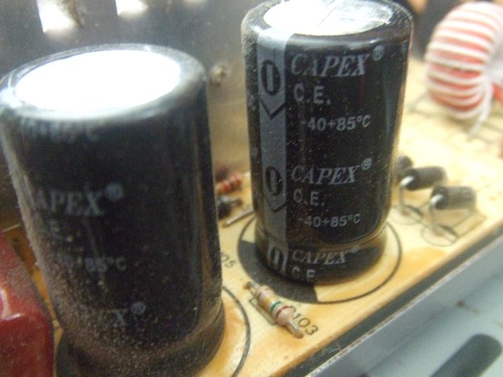 Almost no input filter except for a coil and 2 tiny y caps. Input caps are 220uf 200v Capex brand.