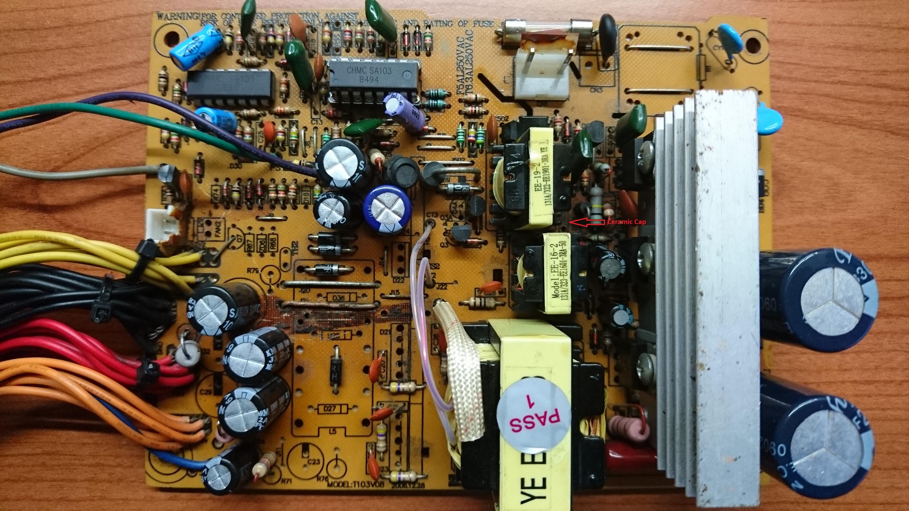 I found a ceramic capacitor roasted on the primary, unfortunately the number is no longer visible, I removed it but the short remains