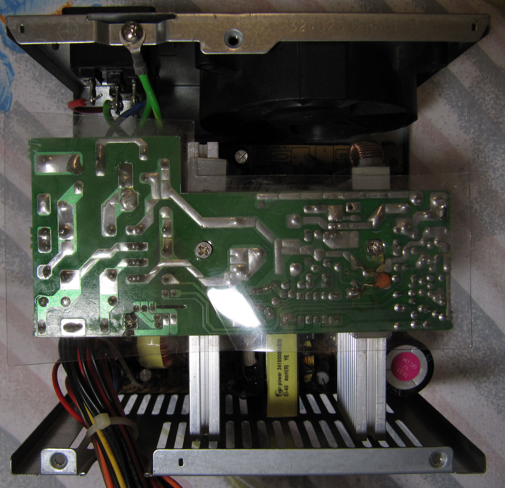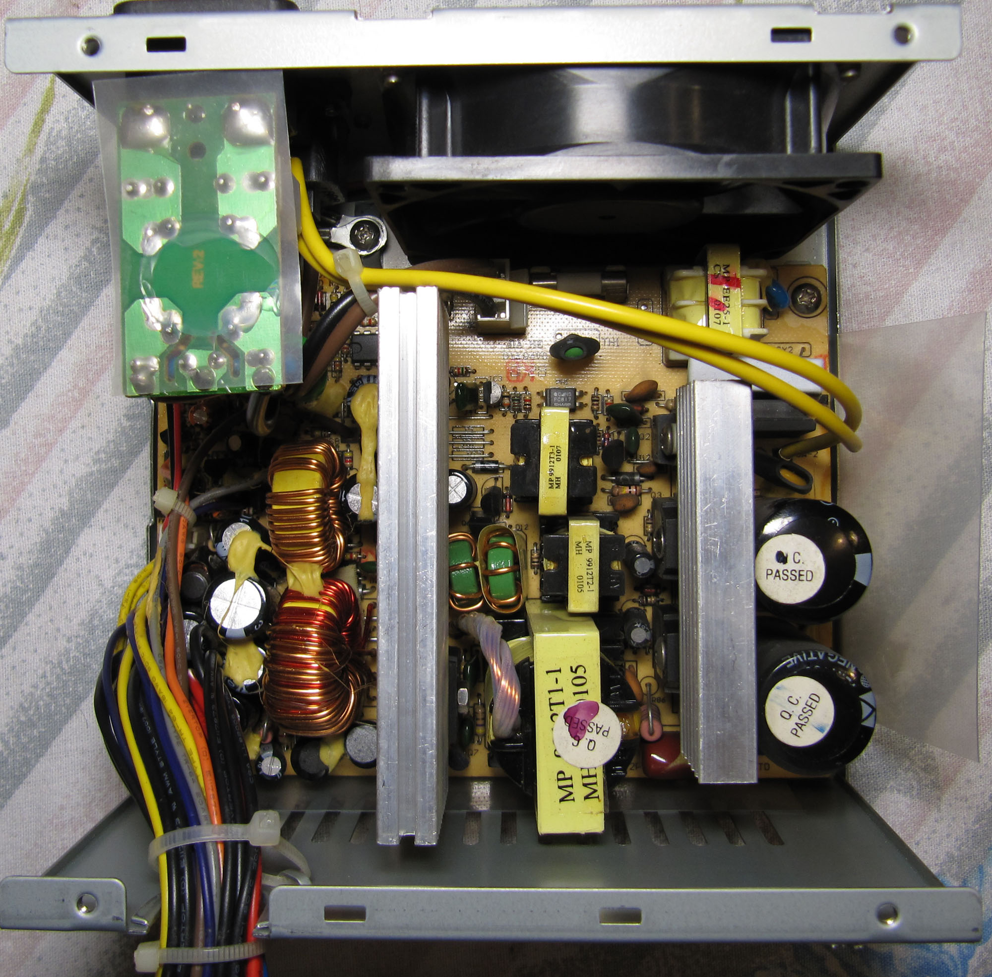 1) Intel(R) Pentium(R) D CPU 2.66GHz (with gigabyte dynamic overclocking goes up to 3.2ghz), 1x512mb ddr533, nvidia 7600GT, hdd sata 80gb 7200rpm, dvd rom & dvd rw , 2x9cm fans