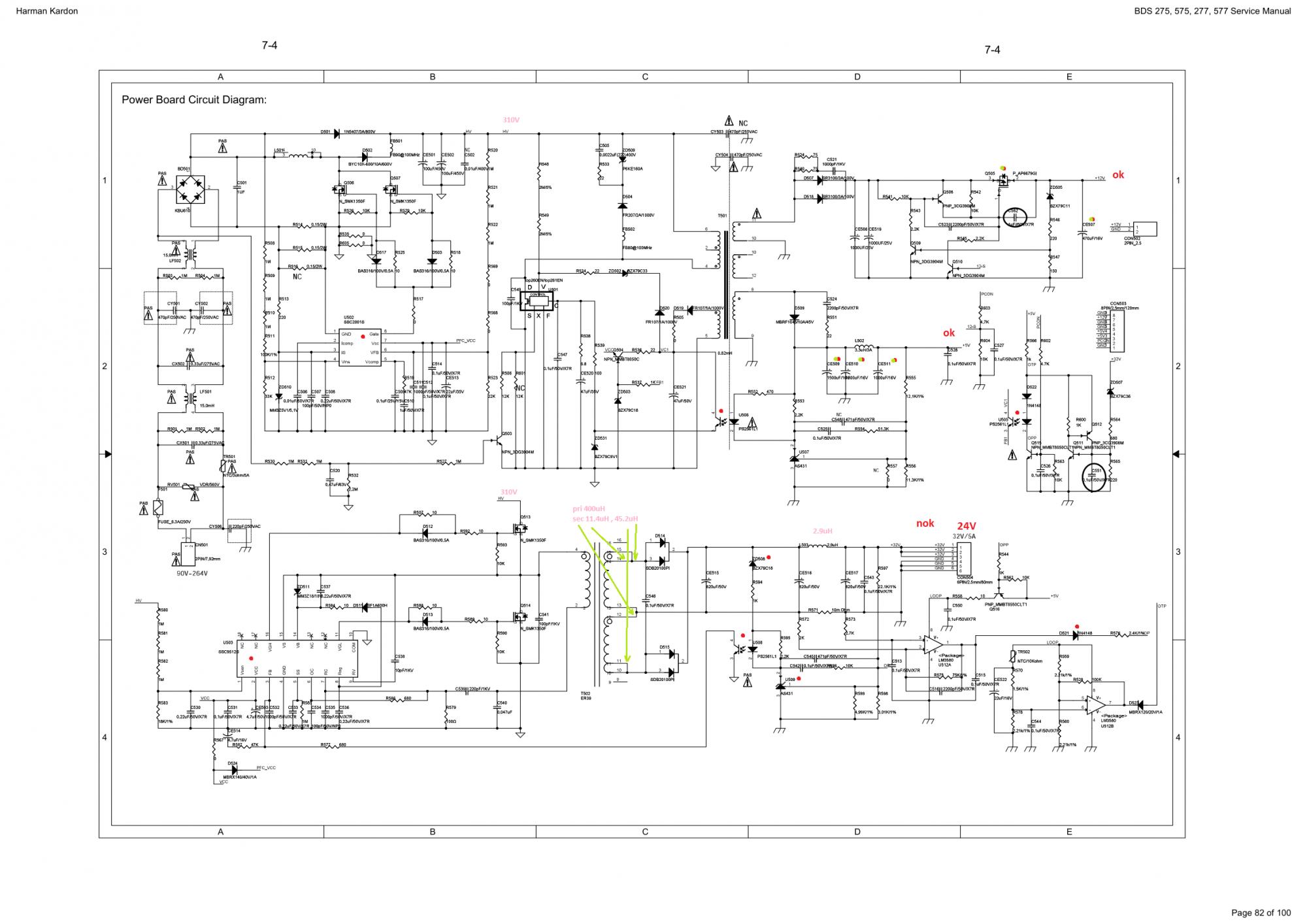 The amplifier also failed in this device, it is powered by the supply that now I have at low voltage. I have replaced amplifier hybrids and the same thing happens either way. With amp it is 22V with out it is 24V.