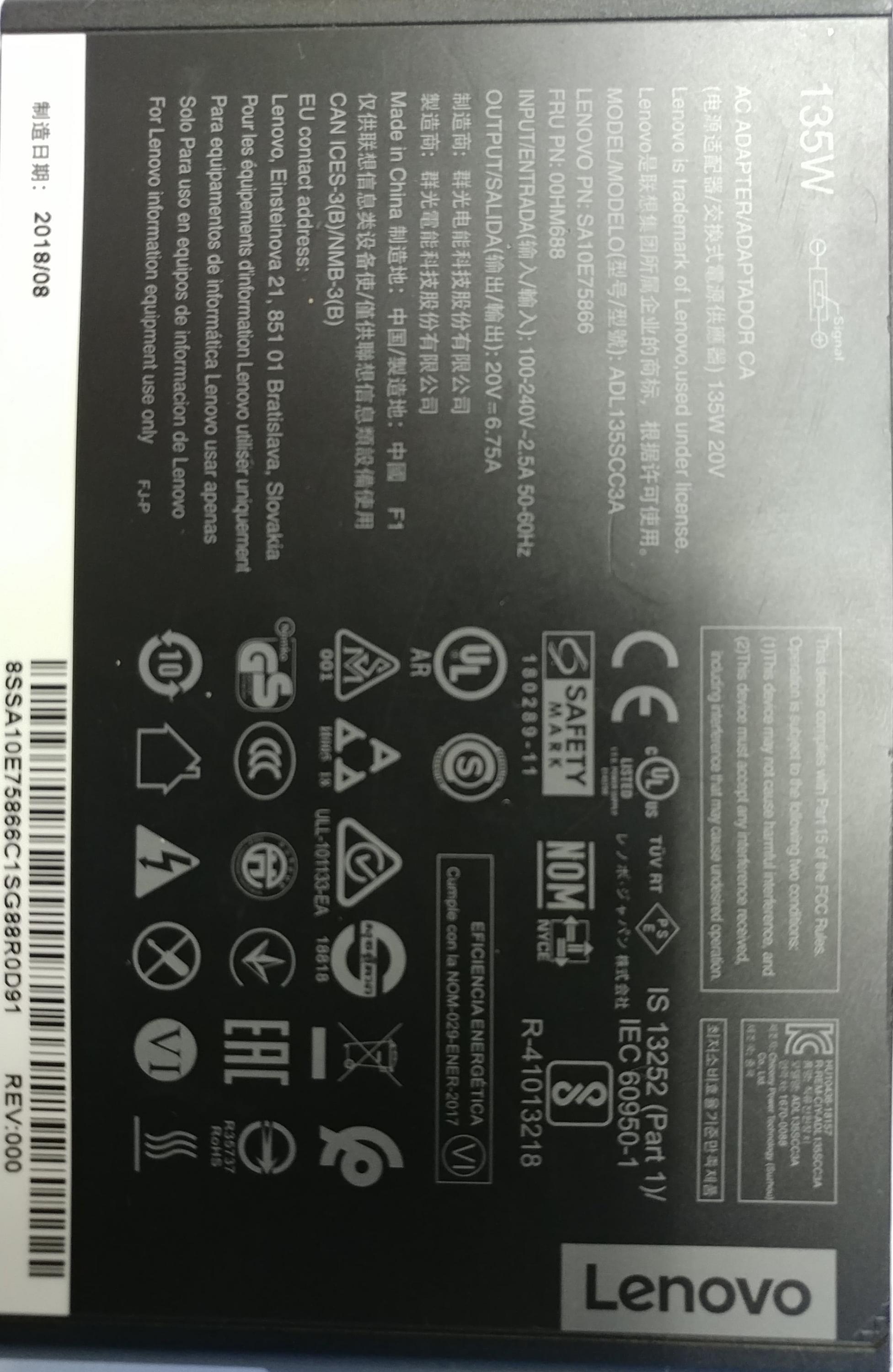 My lenovo 135W charger ADL135SCC3A failed days after the warranty is expired. With some effort I open the adapter without breaking the plastic and found that first input fuse T4A 250V is blown. This is the first components at the charger grid input and there is a good chance that it protected the rest of the circuit from the external overvoltage. Input is 100-240Vac, 2.5A, output is 20V, 6.75Adc.