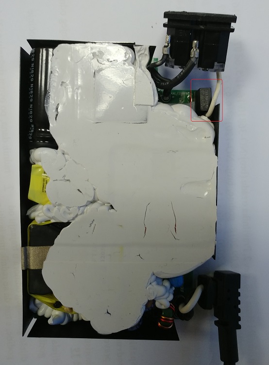 Wow, so Per's adapter blew its primary cap, and it's a Japanese UCC rated for 450V, nonetheless.