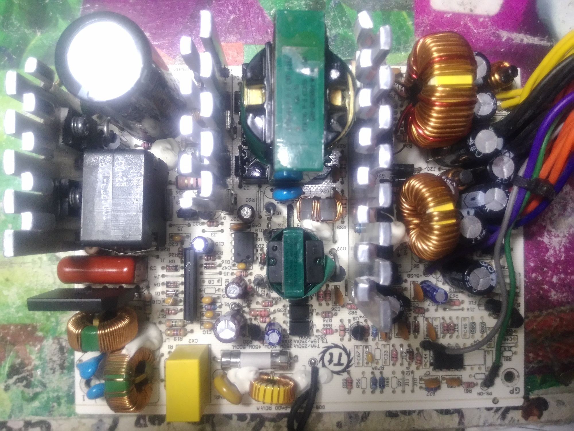 Then i removed the psu and tested it with psu tester and a light bulb (100W) in series with the AC mains.