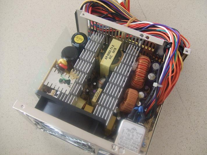 $9 on ebay. Pretty good deal for a unit with extremely good voltage regulation and very little ripple. Don't be fooled by the model number, it is a 450W. Despite being almost server grade in voltages and ripple, it features such things as 100% Fujiyuu with a non-thermal control fan (though it has the ability, on this the spot for the temp sensor is jumperwired right through,) as well as making you think it has APFC.