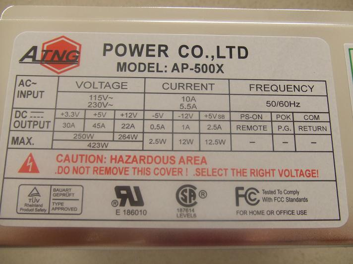 $9 on ebay. Pretty good deal for a unit with extremely good voltage regulation and very little ripple. Don't be fooled by the model number, it is a 450W. Despite being almost server grade in voltages and ripple, it features such things as 100% Fujiyuu with a non-thermal control fan (though it has the ability, on this the spot for the temp sensor is jumperwired right through,) as well as making you think it has APFC.