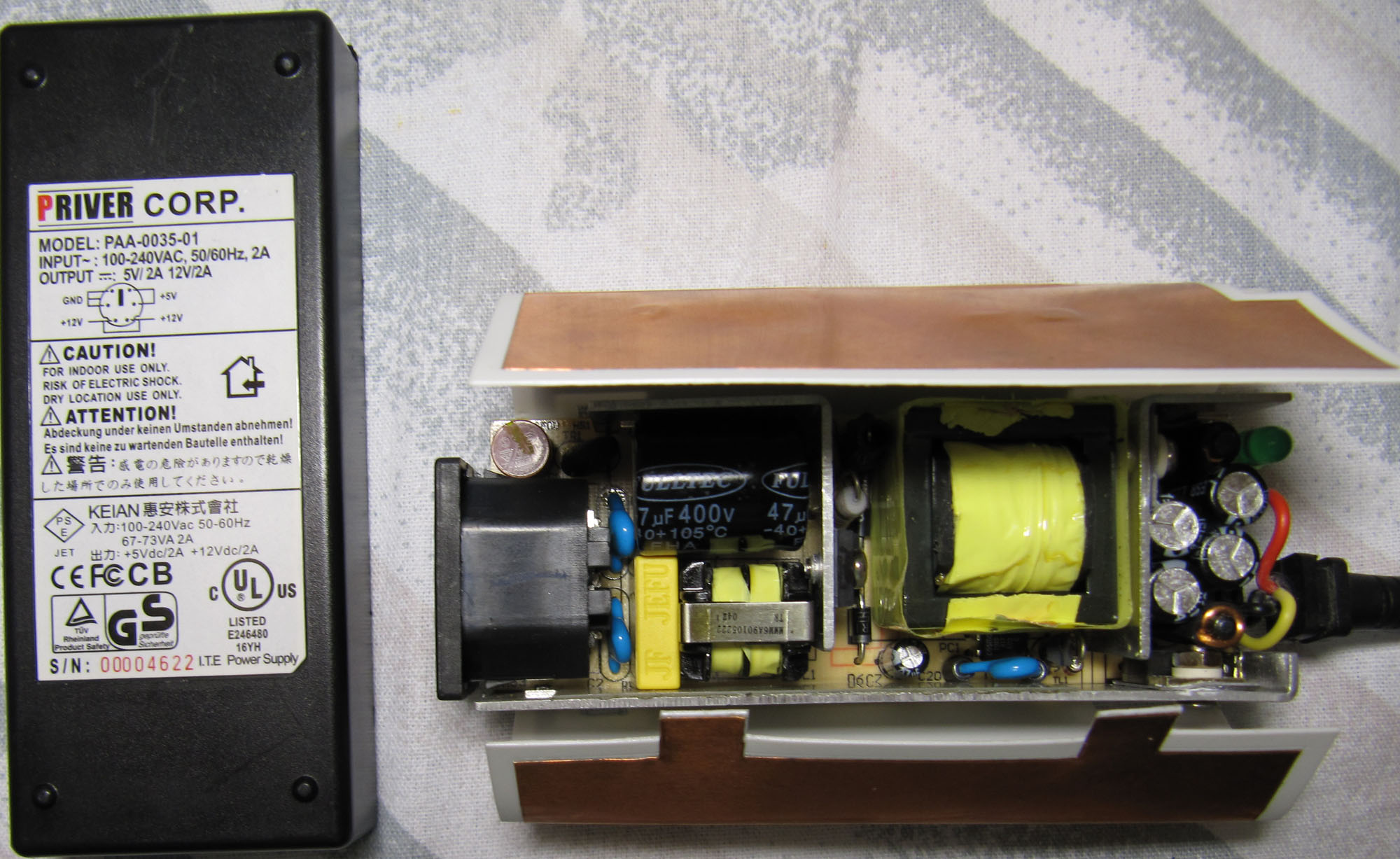 Before opening psu, I have tried adding caps at the outputs (5V and 12V) but it did not make a difference.