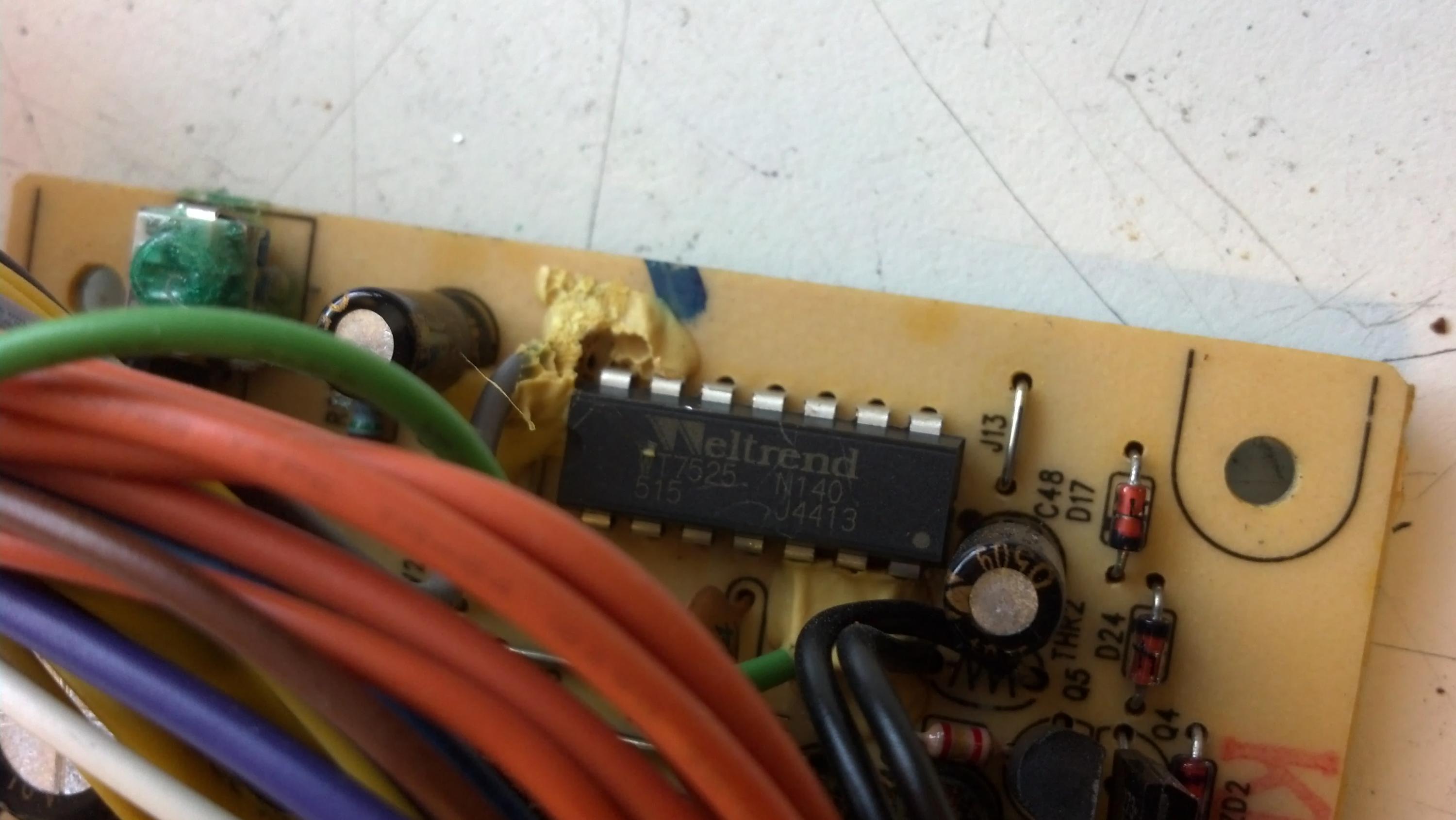 I can't believe this was used in a computer for years. Those poor components. 220uF input caps, four 2A diodes, D4242 switchers, 10A for 3.3V, 16A for 5V, and two 3A diodes for 12V One cap for 12V filtering. "Pentium 4 ready" ?!?! those diodes would barely be able to handle JUST a P4 let alone everything else that uses 12V!