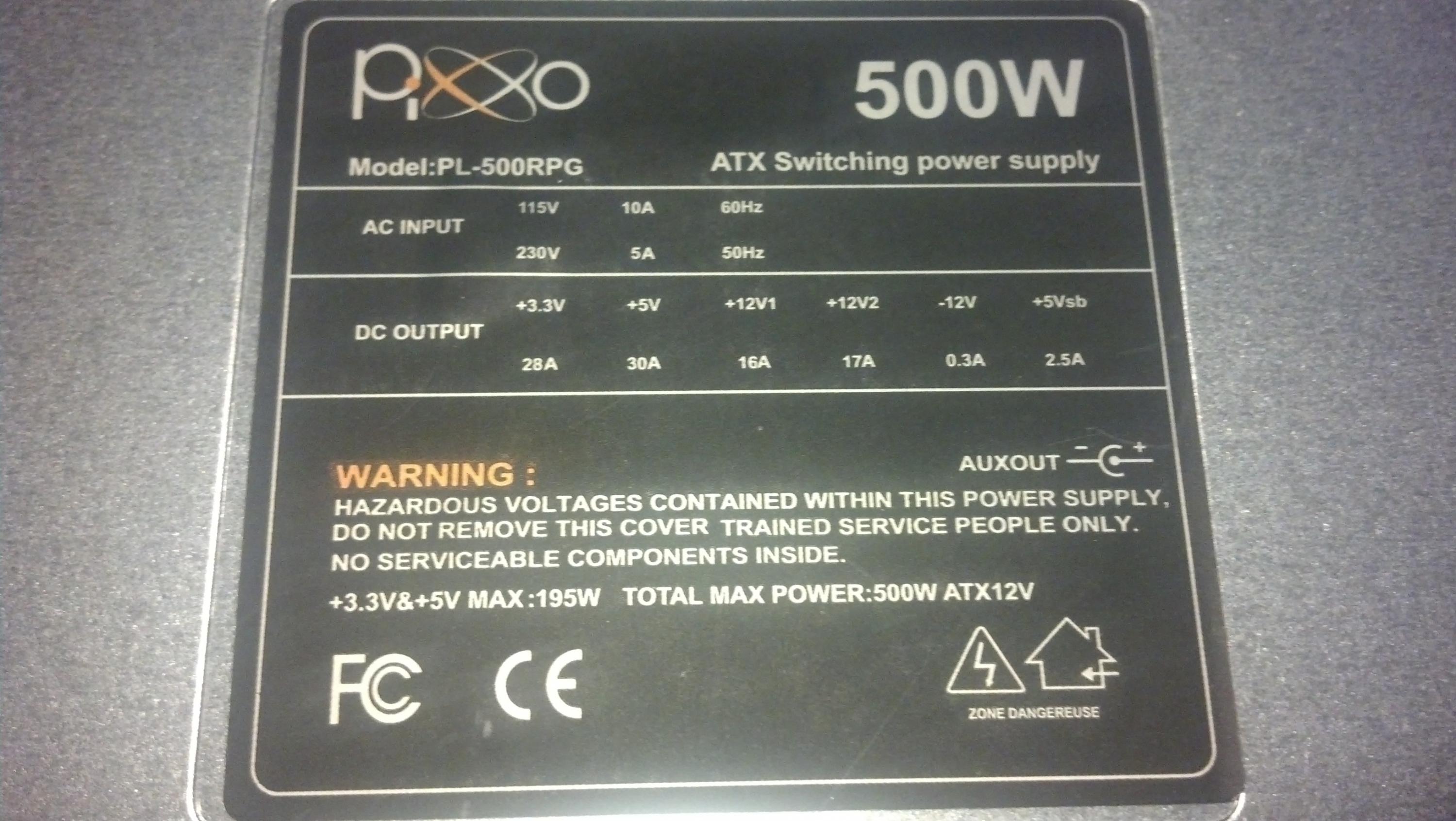 The "new" unit is a KDM-M6480 480W psu, the 480W number is a typical KDM bullshit claim of course, but the 24A rating on the 12V rail seemed reasonable and the "Active PFC" claim gave me a bit of hope that this was going to be decent-ish....