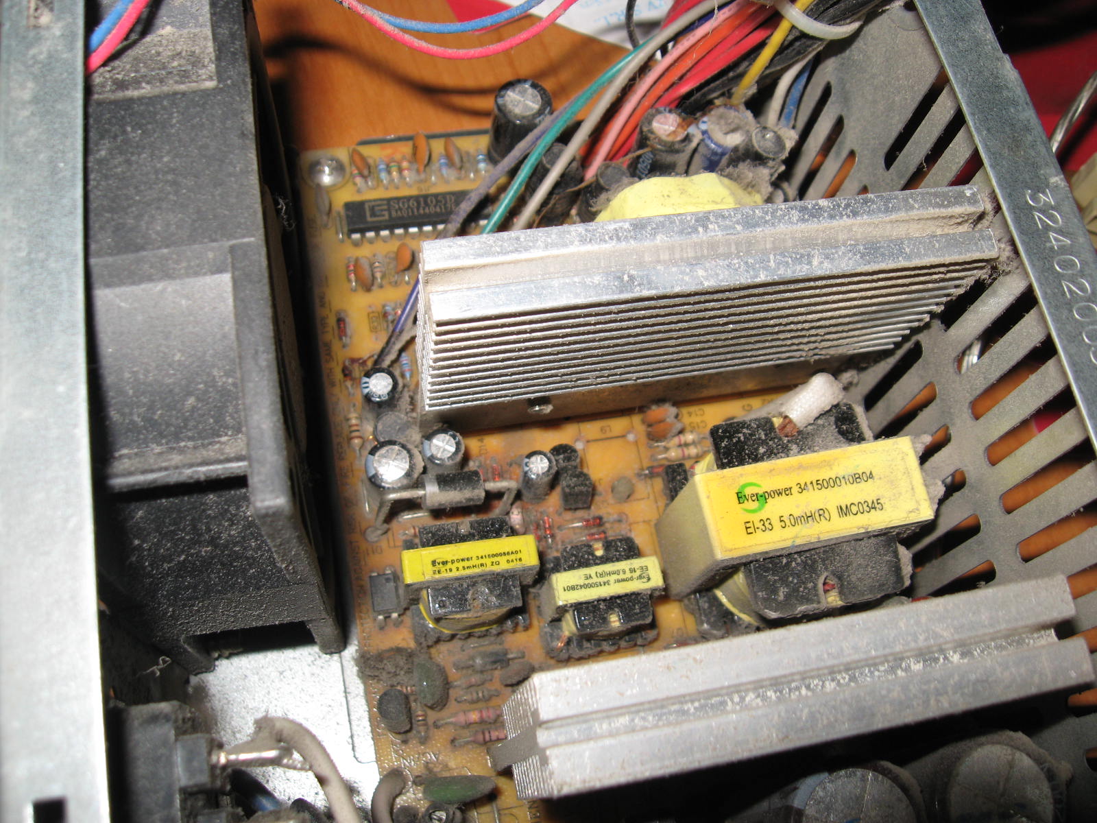 [elitist rant] Dammit, the UC384x family PWMs and power MOSFETs have been around for 3 decades, everyone knows who the good cap vendors are, powdered iron cores have been around longer than I have, and heatsinks have been around and understood as long or longer! There is no excuse for manufacturing and selling a TL494-and-BJT-switch-device-and-26-material-based, unfiltered input, wimpy-heatsunk, crappy-fanned, crappy-&-wimpy-capacitor-populated POS like this. Not without a multilingual warning label such as, "Warning: this POS is a waste of money and is hazardous to your checking account, computer system, and home!" [/elitist rant]