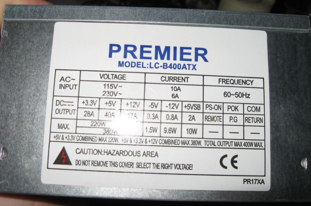 The "new" unit is a KDM-M6480 480W psu, the 480W number is a typical KDM bullshit claim of course, but the 24A rating on the 12V rail seemed reasonable and the "Active PFC" claim gave me a bit of hope that this was going to be decent-ish....