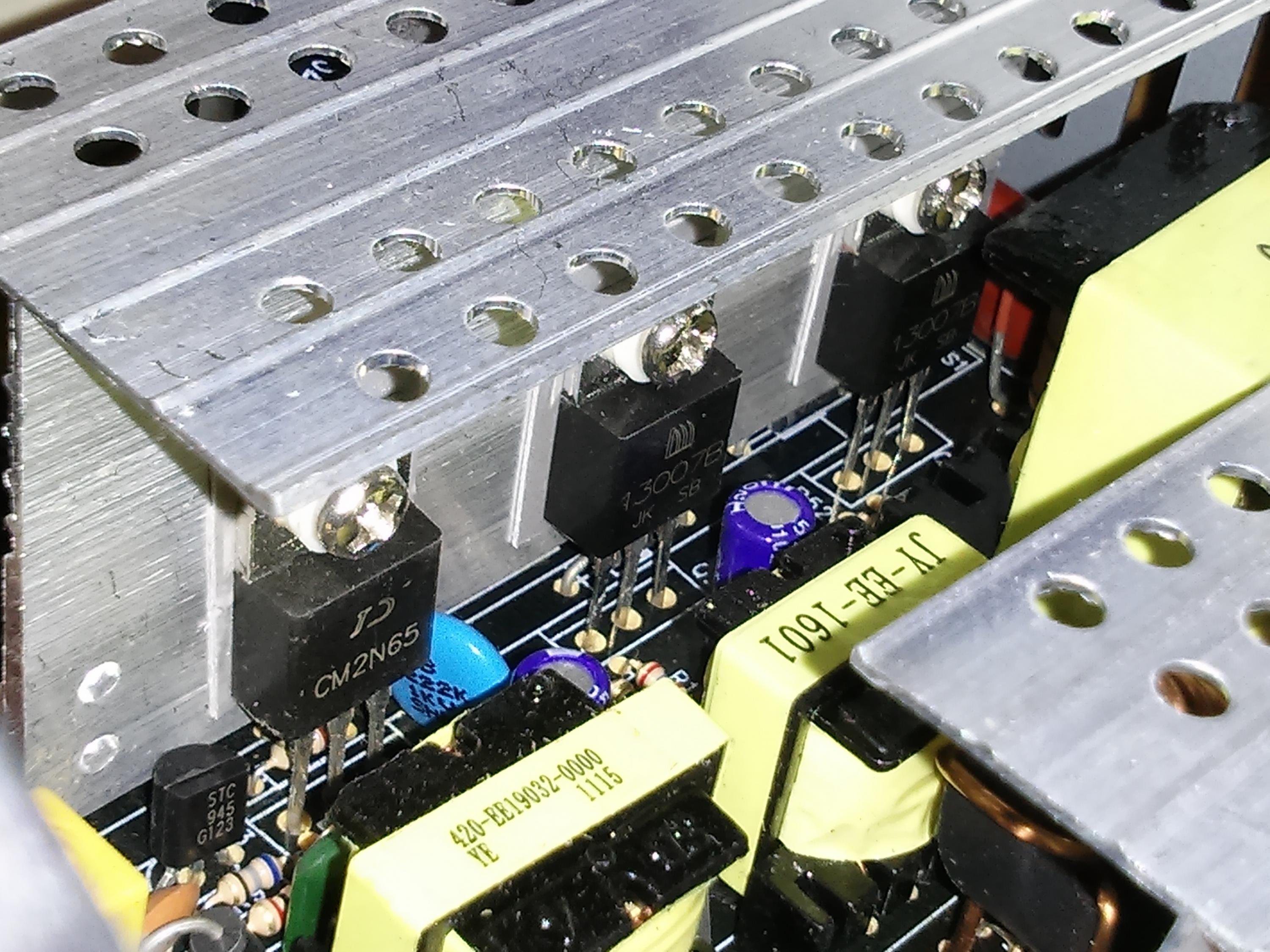 Nah, I just misjudged the rectifiers from the picture. At 2.5A they're less under-sized than I thought, but still probably not good - with reasonable derating - for more than 400W. Not having PFC, the peak currents those things conduct at the peaks of each half cycle must be pretty high (looks like it can handle on the order of 12A repetitive peaks).I actually checked those diodes after taking the shots. I think it says RL257 on those and in that case they're rated for 2.5 A each: