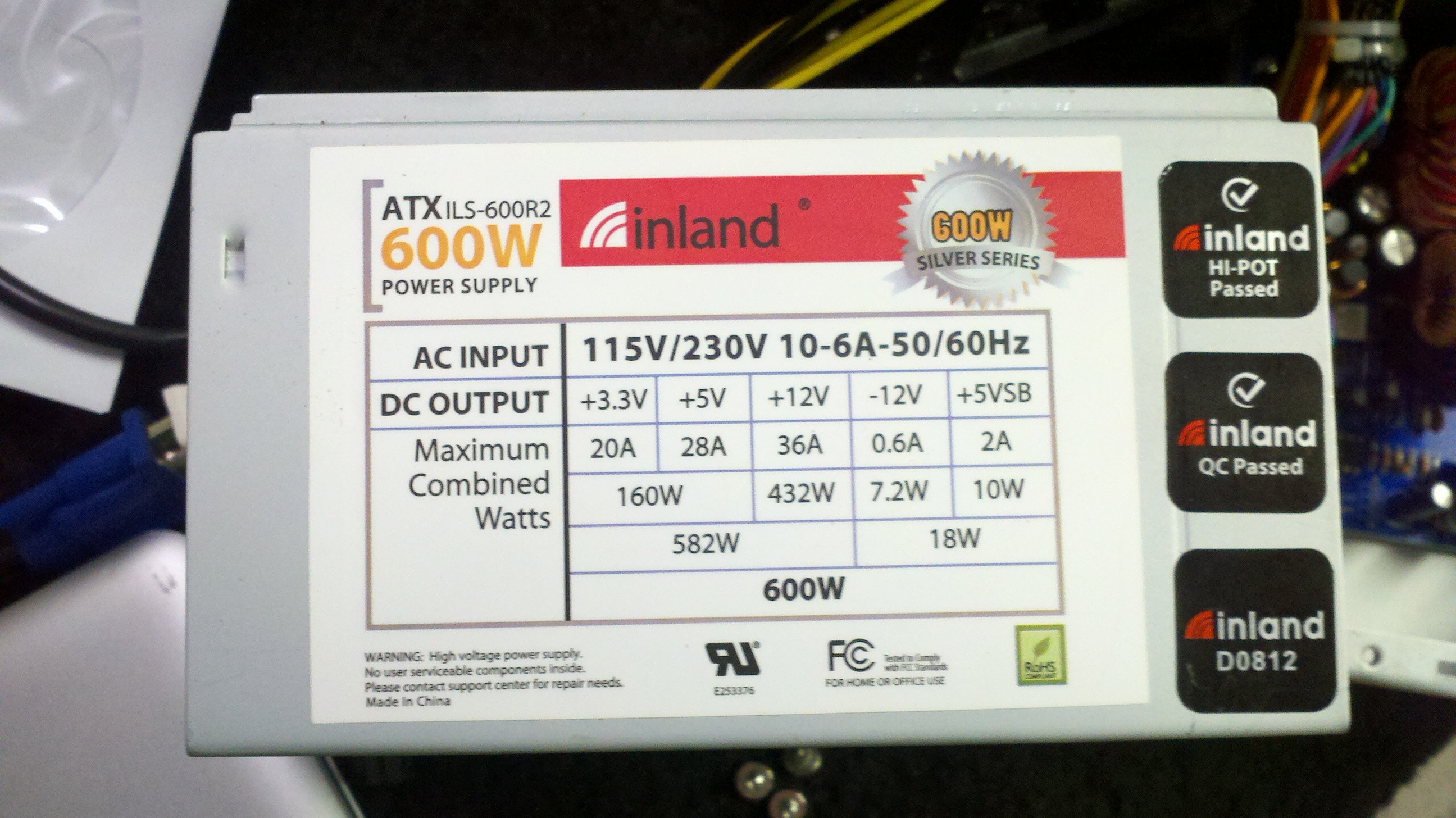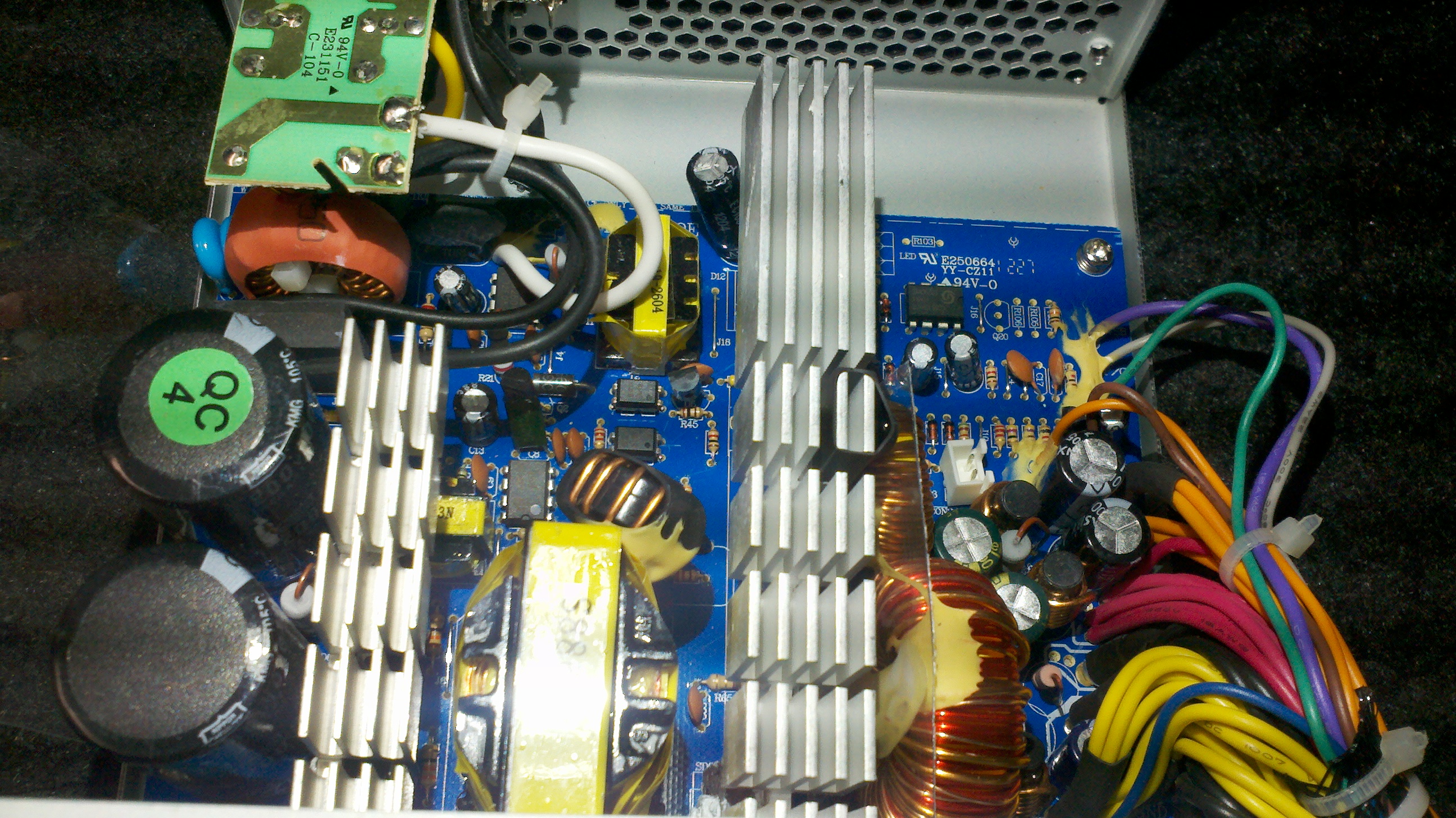 The "new" unit is a KDM-M6480 480W psu, the 480W number is a typical KDM bullshit claim of course, but the 24A rating on the 12V rail seemed reasonable and the "Active PFC" claim gave me a bit of hope that this was going to be decent-ish....