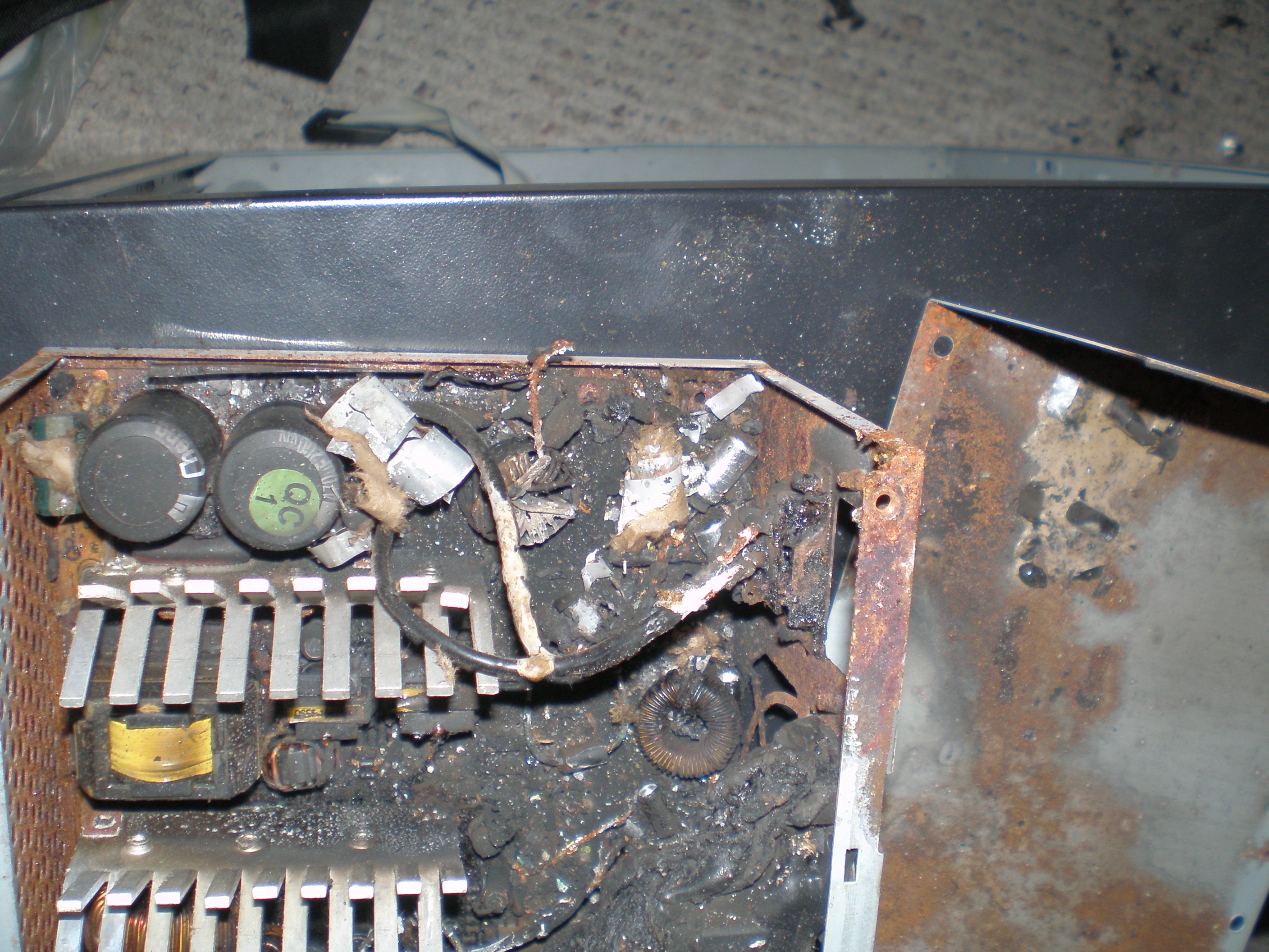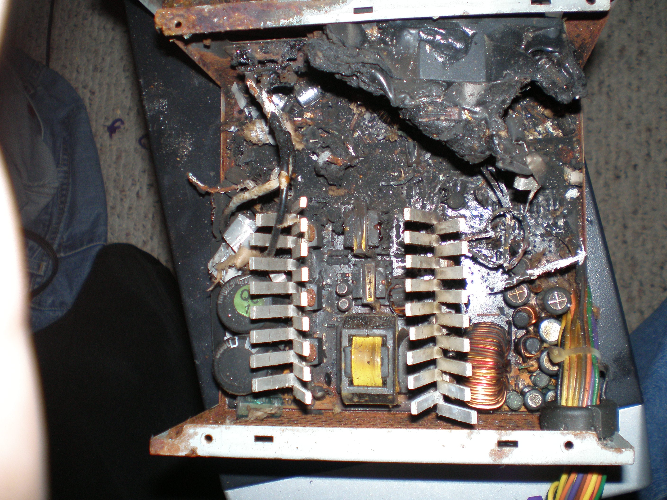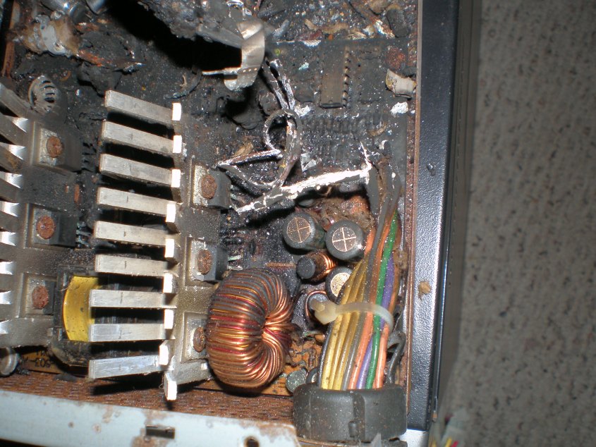 I have never seen a PSU that toasted before. The heatsinks are still good though!