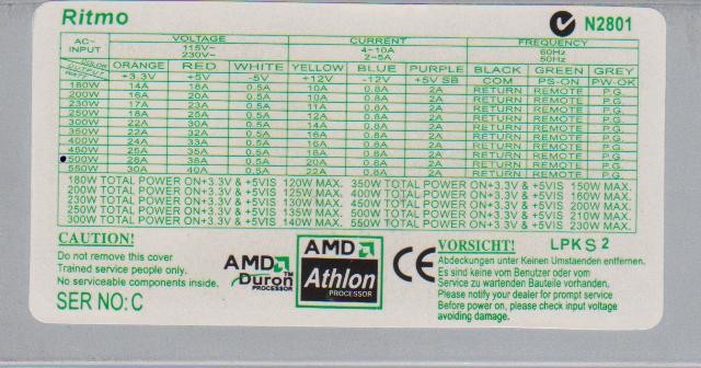 The "new" unit is a KDM-M6480 480W psu, the 480W number is a typical KDM bullshit claim of course, but the 24A rating on the 12V rail seemed reasonable and the "Active PFC" claim gave me a bit of hope that this was going to be decent-ish....