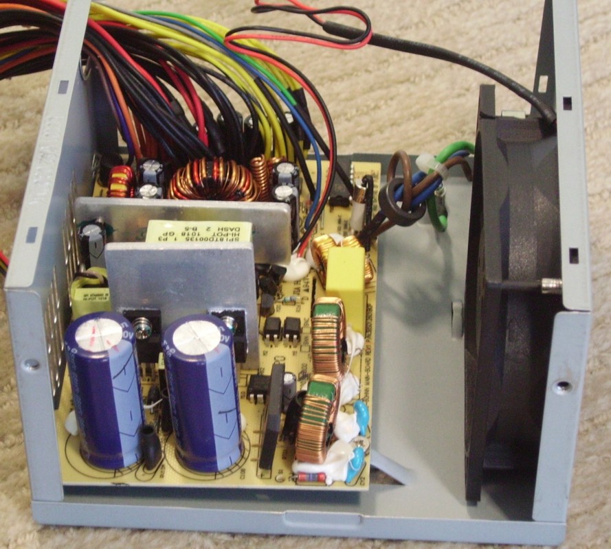 This was shawly not a 500W like it claimed to be. Notice the heat damage on the output. The wires were melted near the PCB. The funny thing is that when I peeled off the label with the SHAW brand, there ws another label claiming it was a Ritmo. Any ideas who made it? Maybe TaiwanBreakDownComponents Company? The heatsinks were OK-ish, but the 5vsb transistor was a total joke - about the same size as the one on kc8's echo star 480.