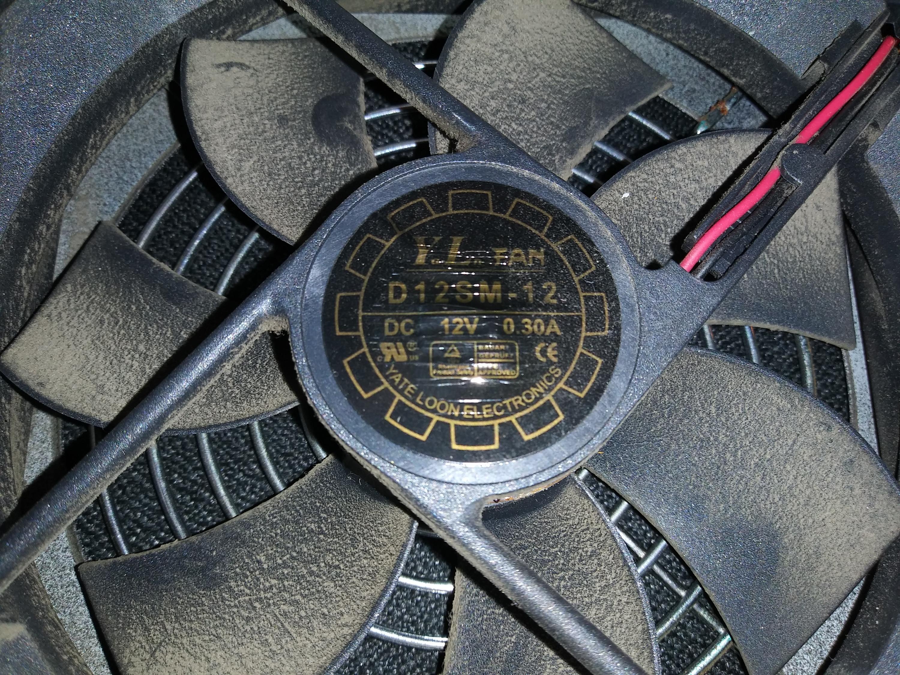 The fan is seized up and it looks like the motor got really hot, there was also a plastic sheet in front of half the fan but I removed it before taking the photo.