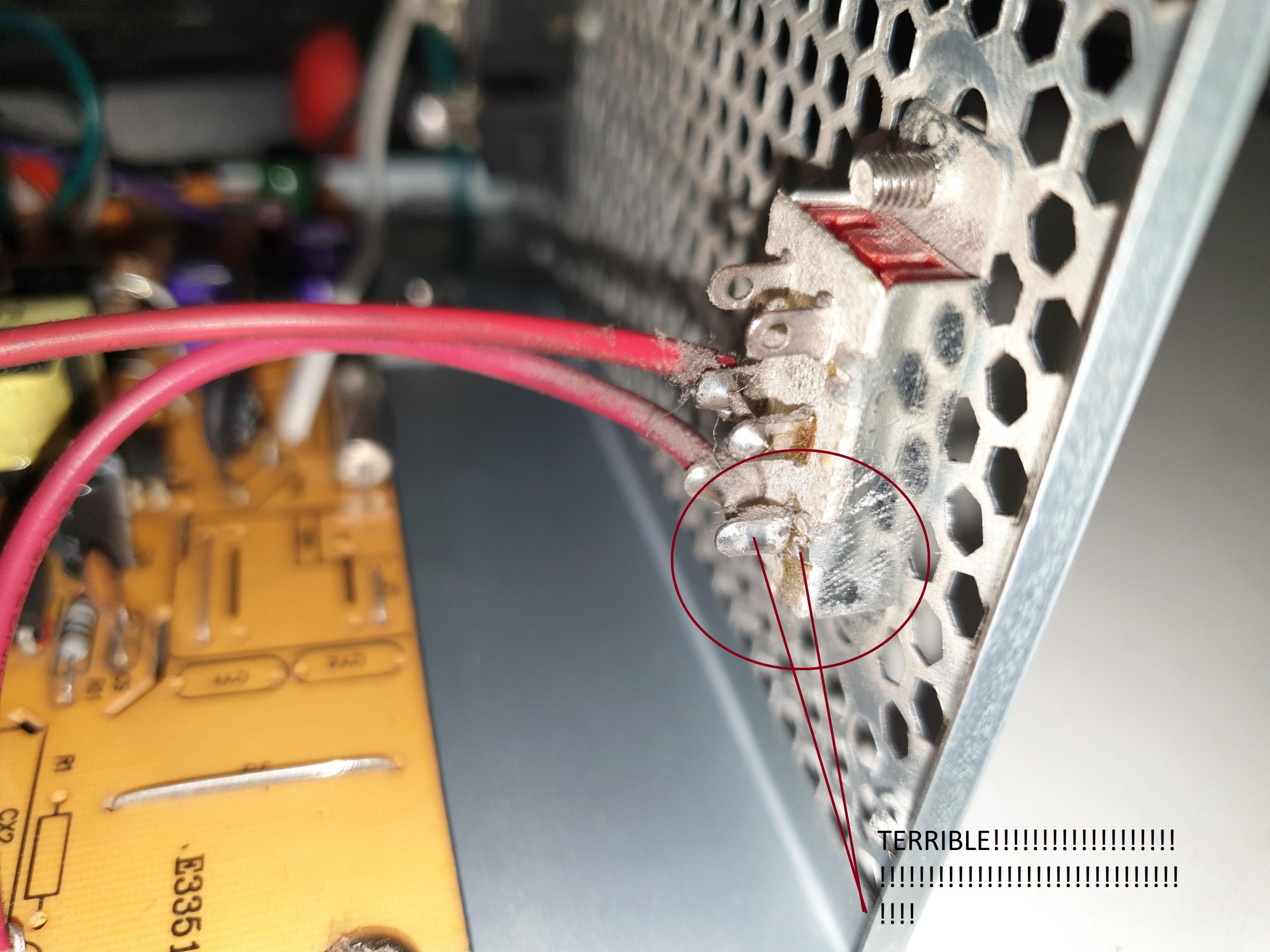 Most terrible, the wiring voltage switch does not carry any insulating protection, and for more, the cable ends are very close to the psu chassis.