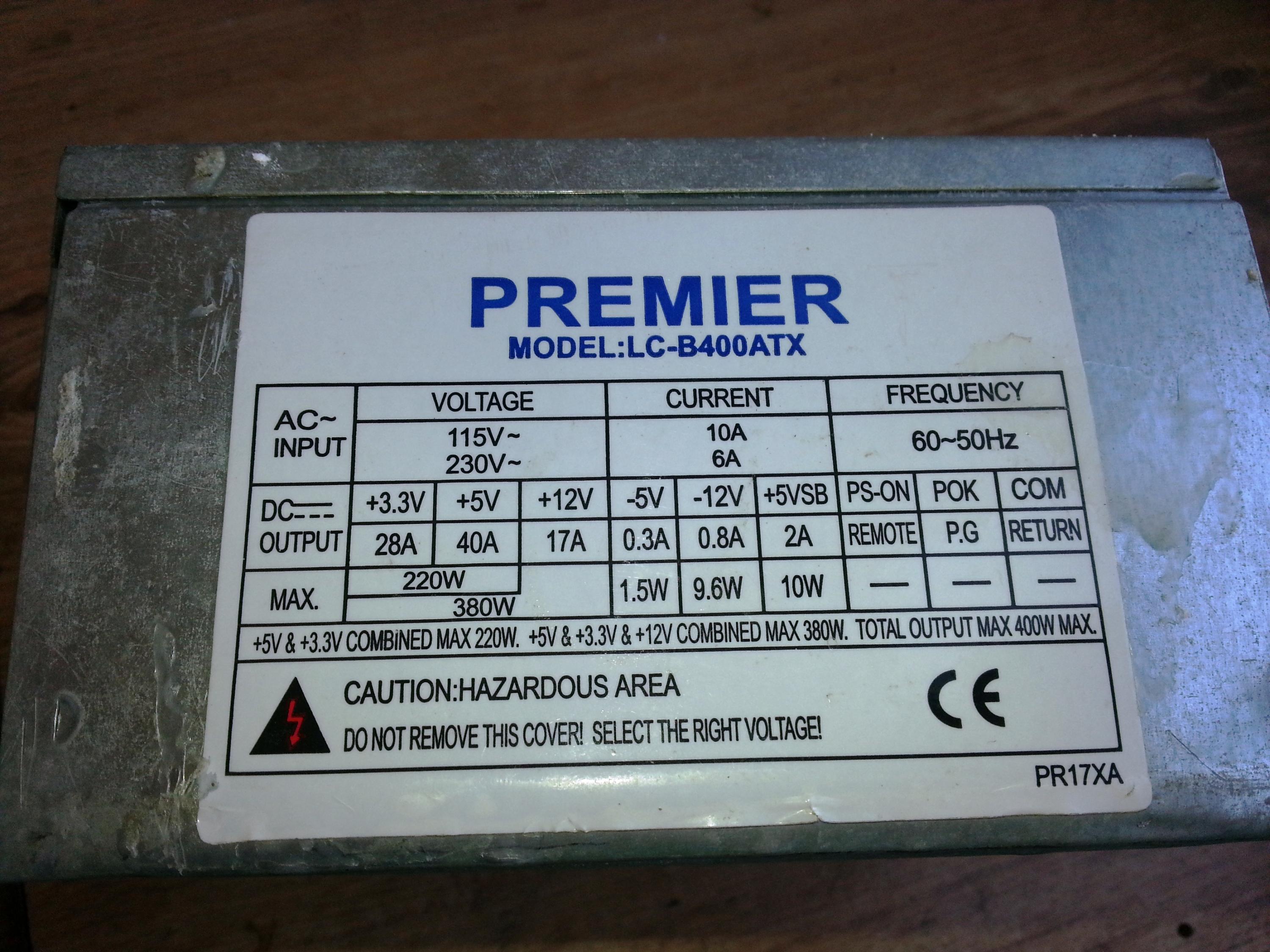 The "new" unit is a KDM-M6480 480W psu, the 480W number is a typical KDM bullshit claim of course, but the 24A rating on the 12V rail seemed reasonable and the "Active PFC" claim gave me a bit of hope that this was going to be decent-ish....