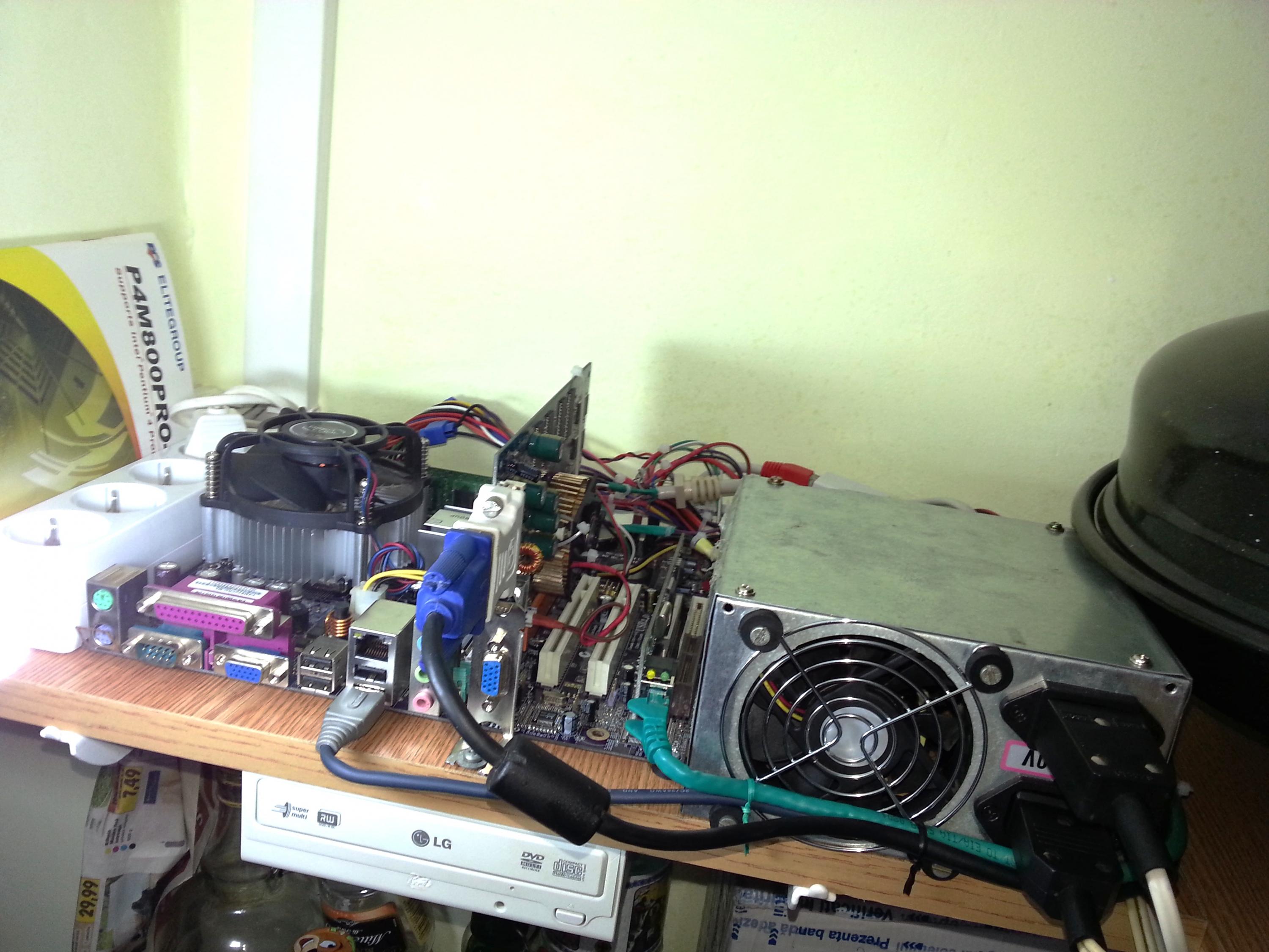 When the client brought me the computer to fix it, he told me that the heatsink fan was not working, and when I started to diagnose it, I found the heatsink of the cpu loose, the fan cables cut off, I removed processor from the motherboard to proceed to turn on the computer without burning the CPU, I put the cables in their fan place, plug the fan and it does not turn (what the owner burned when putting the cables wrong) (the computer turned on but did not give video and the dvd reader and the HDD made strange noises) and I also hear sparks inside the PSU due to an electric leak in the exploded capacitor, I change the PSU for a new one, put the CPU in its place, put a new heatsink and it worked again.