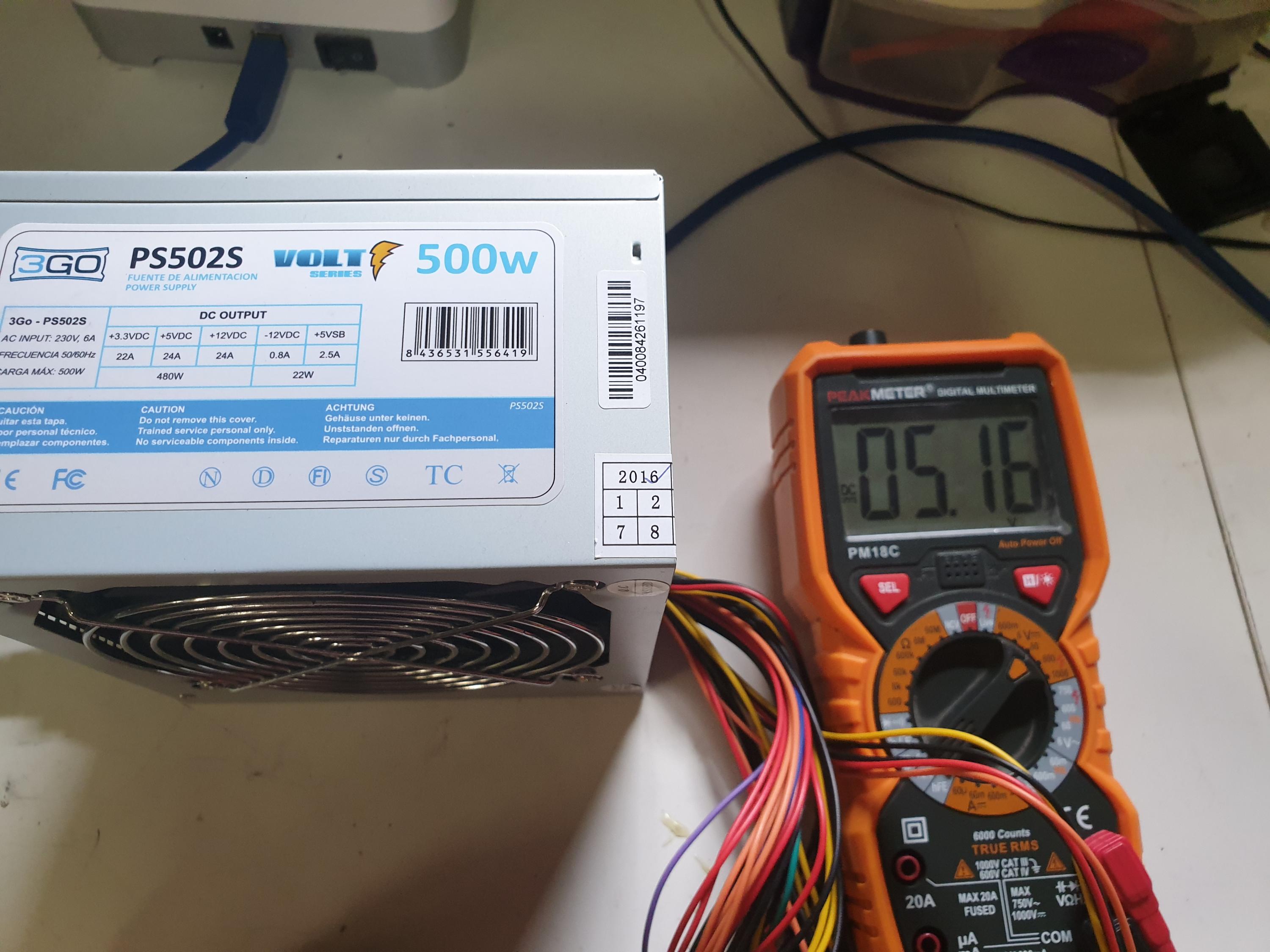 The 5VBS voltage has such a terrible ripple that the multimeter is able to perceive it (the last 2 photos), the 5V line is out of specifications (5.28v) (first photo).