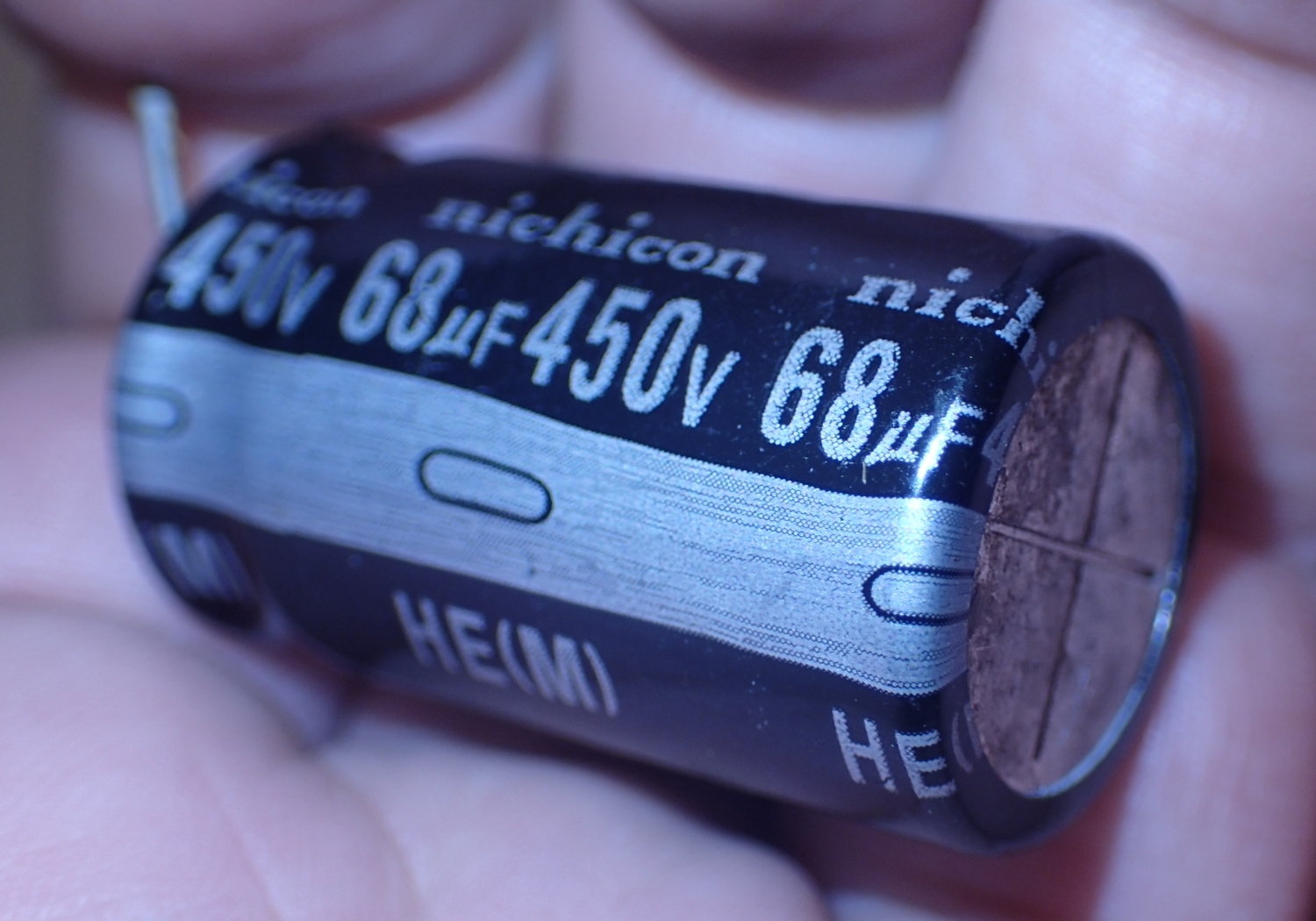 Primary cap: 68µ 450V, "Nichicon HE" (FAKE - See pics!)