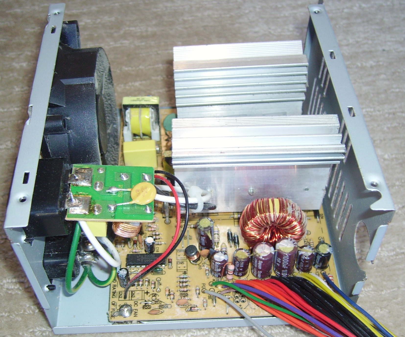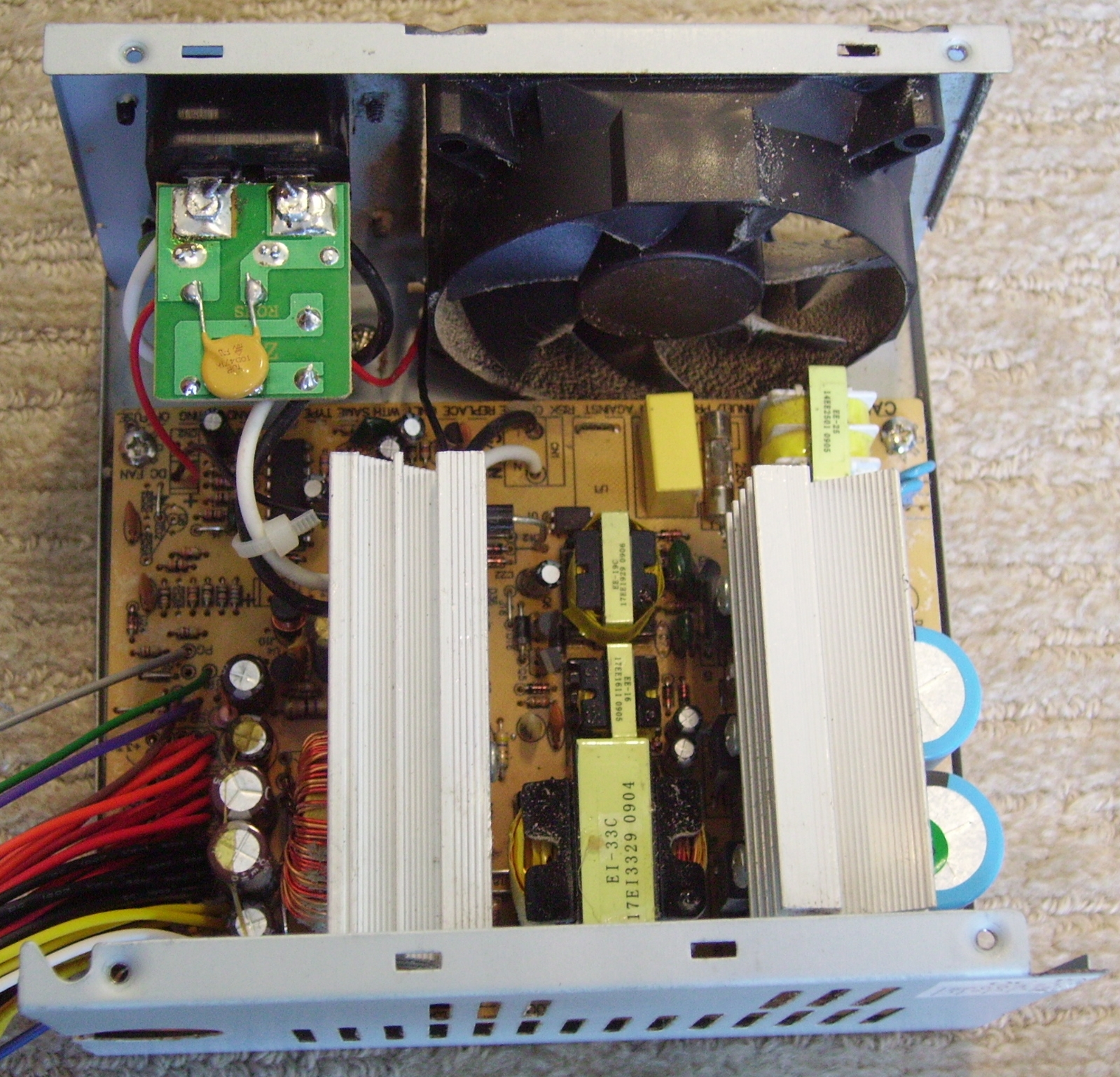 I got it in a case I bought in 2004 or 2005. I used this power supply with an Althon XP2200+, a K7S8X motherboard and a Radeon 9600 Pro for about five years with no problem. No filter, no PFC, a lot of missing components. I've stripped it and threw the rest to the trash.