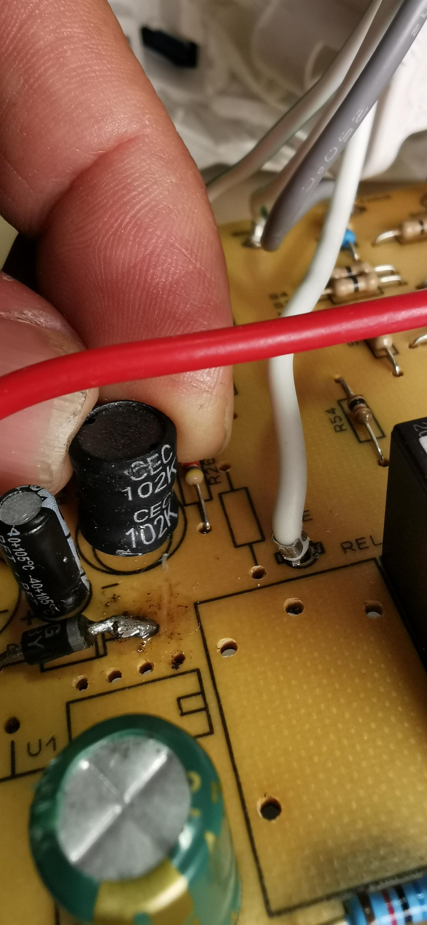 I decided to restore all the good and new components back into the PCB and do a basic continuity check - new 2W 100ohm R1 resistor, new 50v 100uF C2 capacitor, new U1 LNK304, and the original L2 inductor.