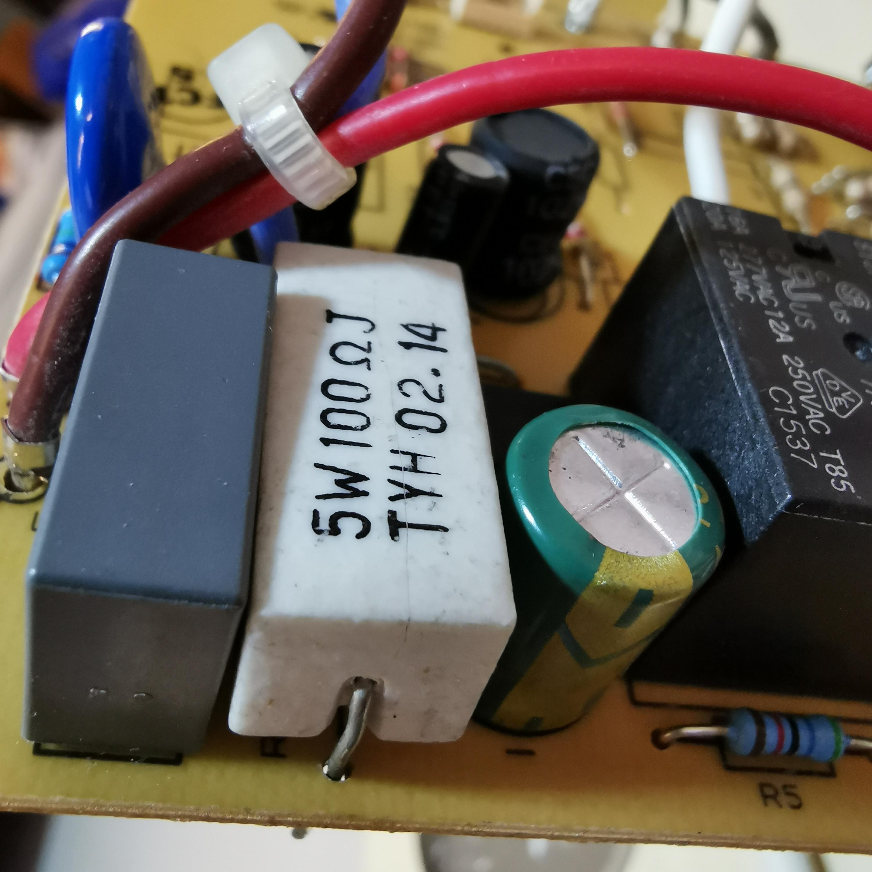 Replaced the burnt resistor with a trial 5W 100ohm resistor for quick test, power on, and it immediately blown a 100nF 50V capacitor nearby.