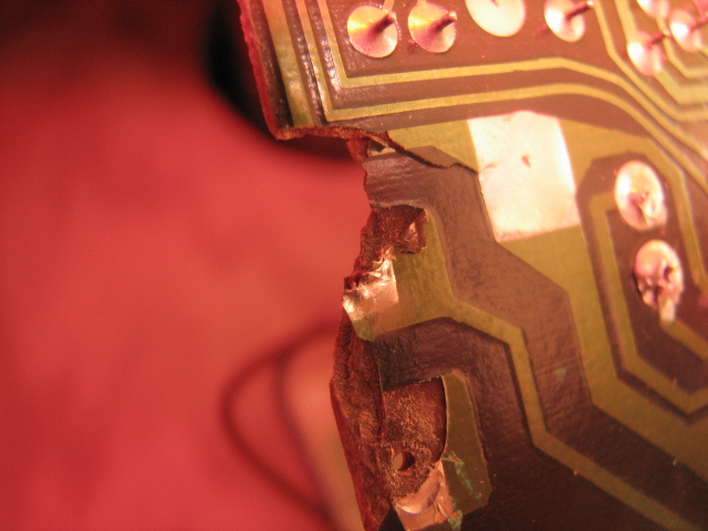 epoxy resin is good on busted pcb's - *NEVER* use cyanocrylate. (superglue, crazy glue etc.)