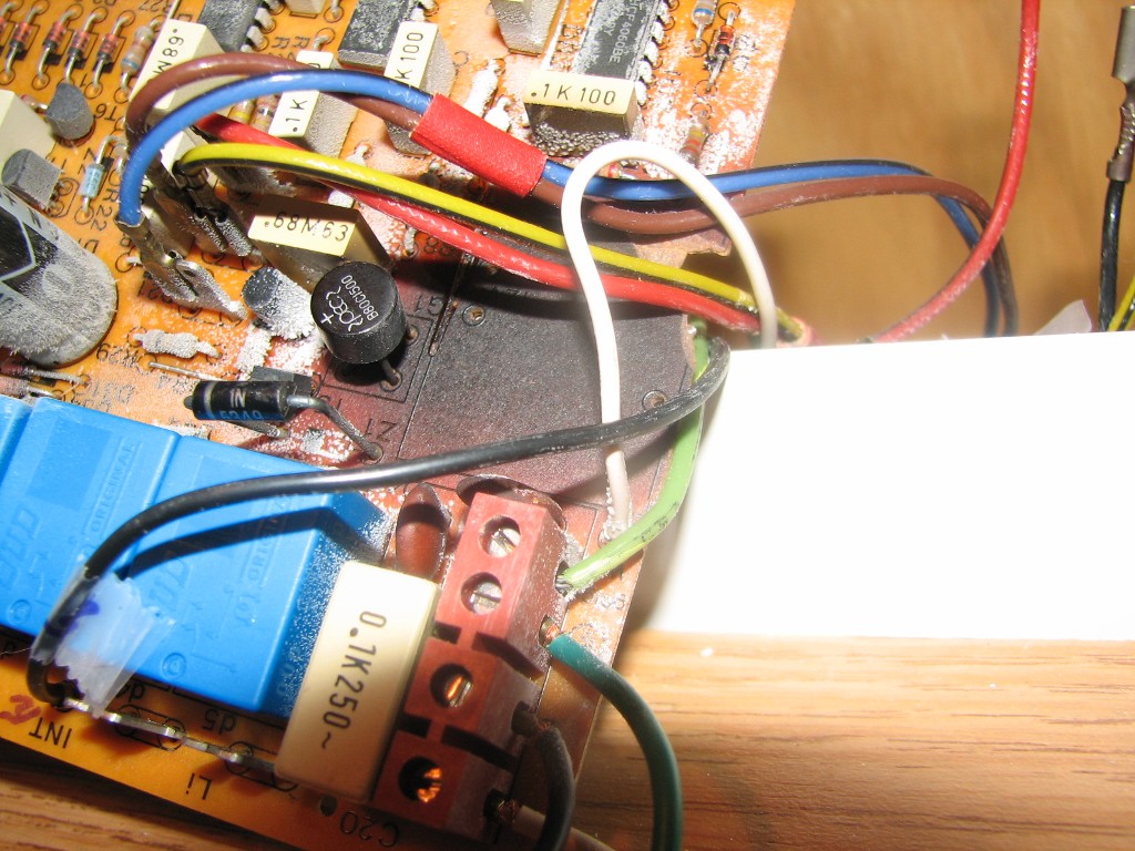 The brown disc that says 202m is a ceramic disc capacitor. The 202m means 2nF (nano farad), which isn't much. I would be most concerned with the gray cylinder that says 470uF on it (you also need to know the voltage, should be XXv next to the 470uf, but I can't see it in the picture). The gray cylinder is a electrolytic capacitor, the very type of component that caused the creation of this forum. I would also check the little black cylinder with the + on the top of it (it should have 4 legs coming out of it). That is the rectifier that takes AC from the transformer and converts it to DC. Although it is probably ok. Since the transformer was so wimpy, it likely blew before before anything else could be damaged. Right now my money is riding on the 470uF capacitor was the thing that went bad and caused the transformer to blow. Much like my treadmill story above. There is at least a good chance that I am right