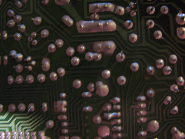 What is the white "fuzz" on the component side of the board? It looks worrying.