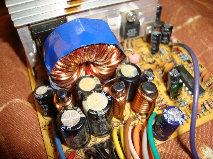 Hi, my father gave me this psu as a gift and after opening it, i found that is missing some filtering coils in the input and output. I have some coils and caps from dead psus to put in, but i can't because there is a resistor blocking the space for the input coil and one of the pi coils that should be in the secondary.