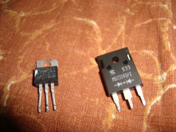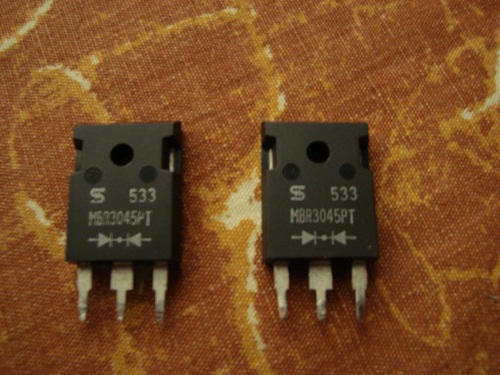 For the secondary i have two MBR3045, but the holes spacing is too small for those rectifiers, any ideas?