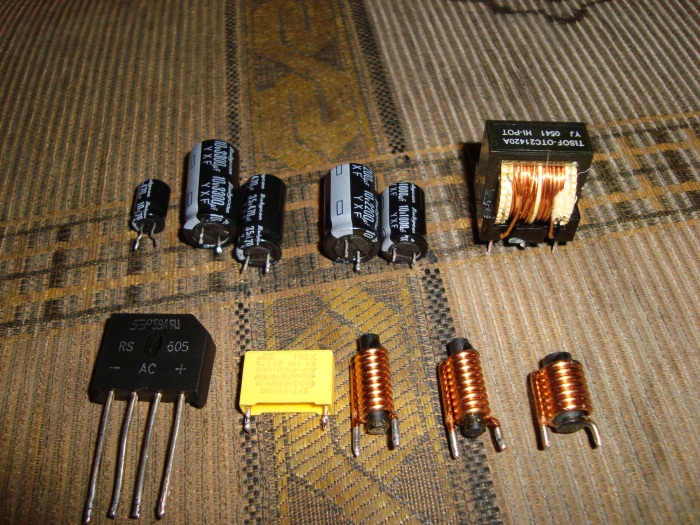 Ok, i soldered the bridge rectifier, the input coil, x cap, and the pi coils. The caps haven't been replaced because i want to test it first, maybe tommorrow.
