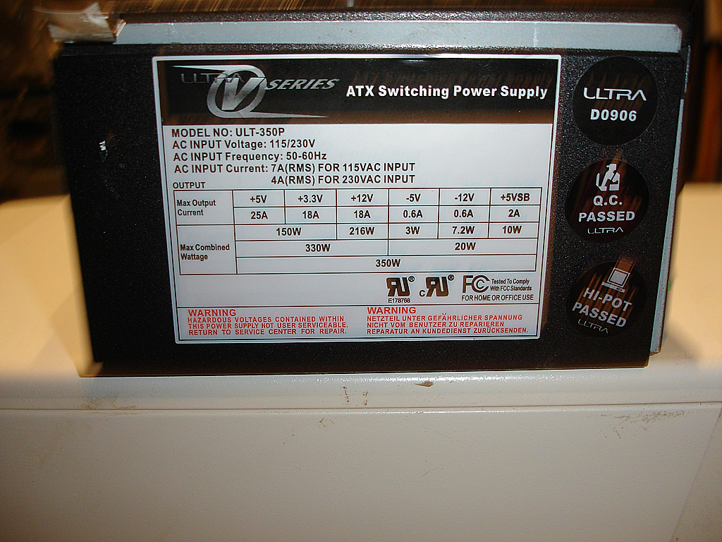 The third picture shows the arcing on the green PS-ON wire, and the second last shows the doming on the capacitor between the two toroids.