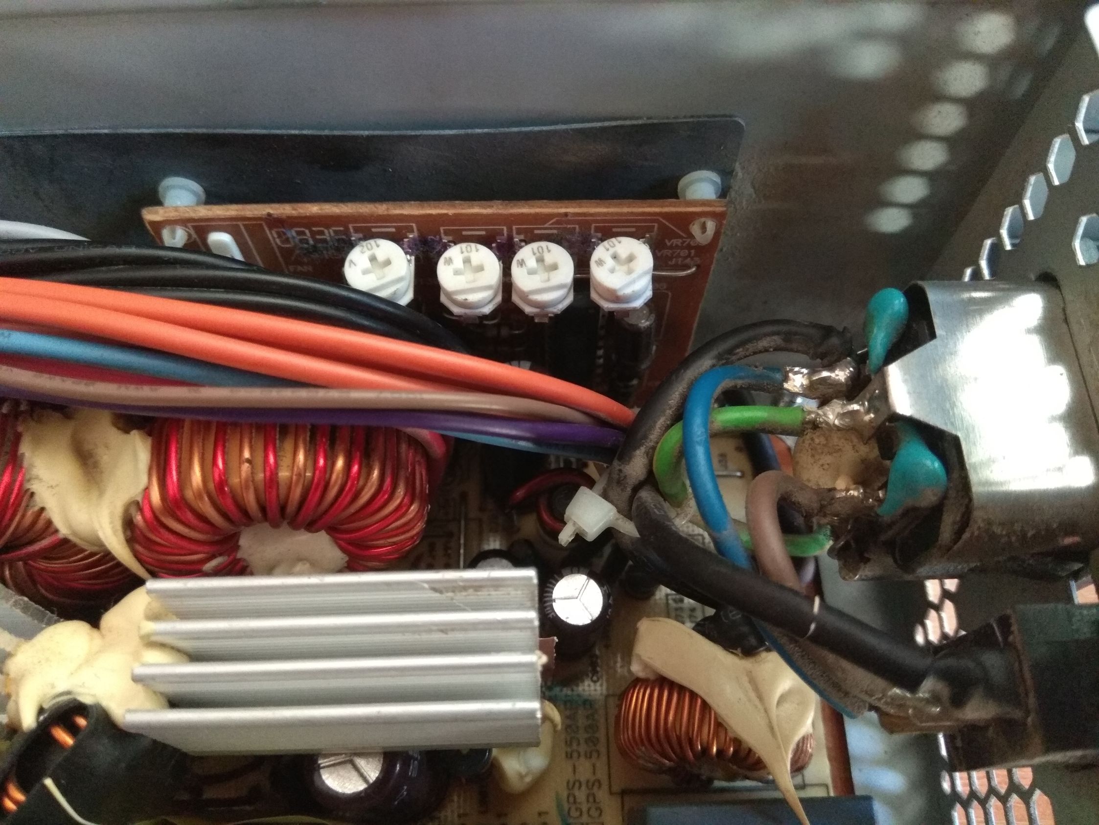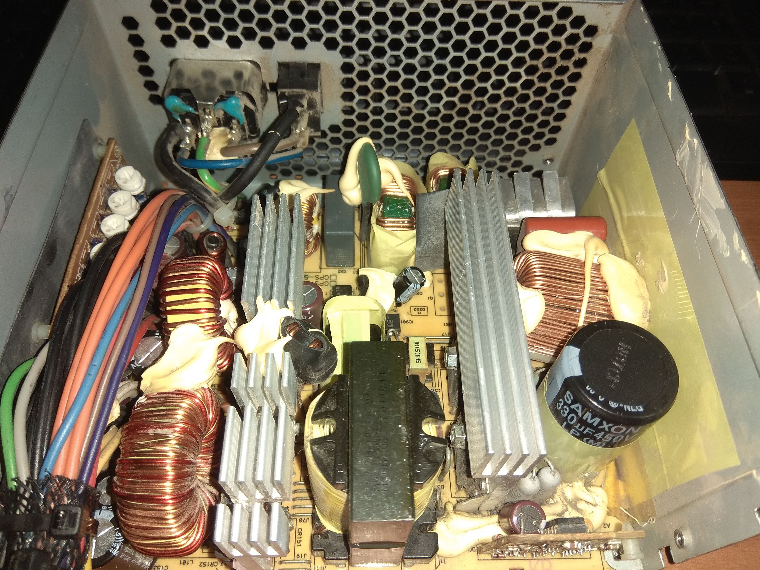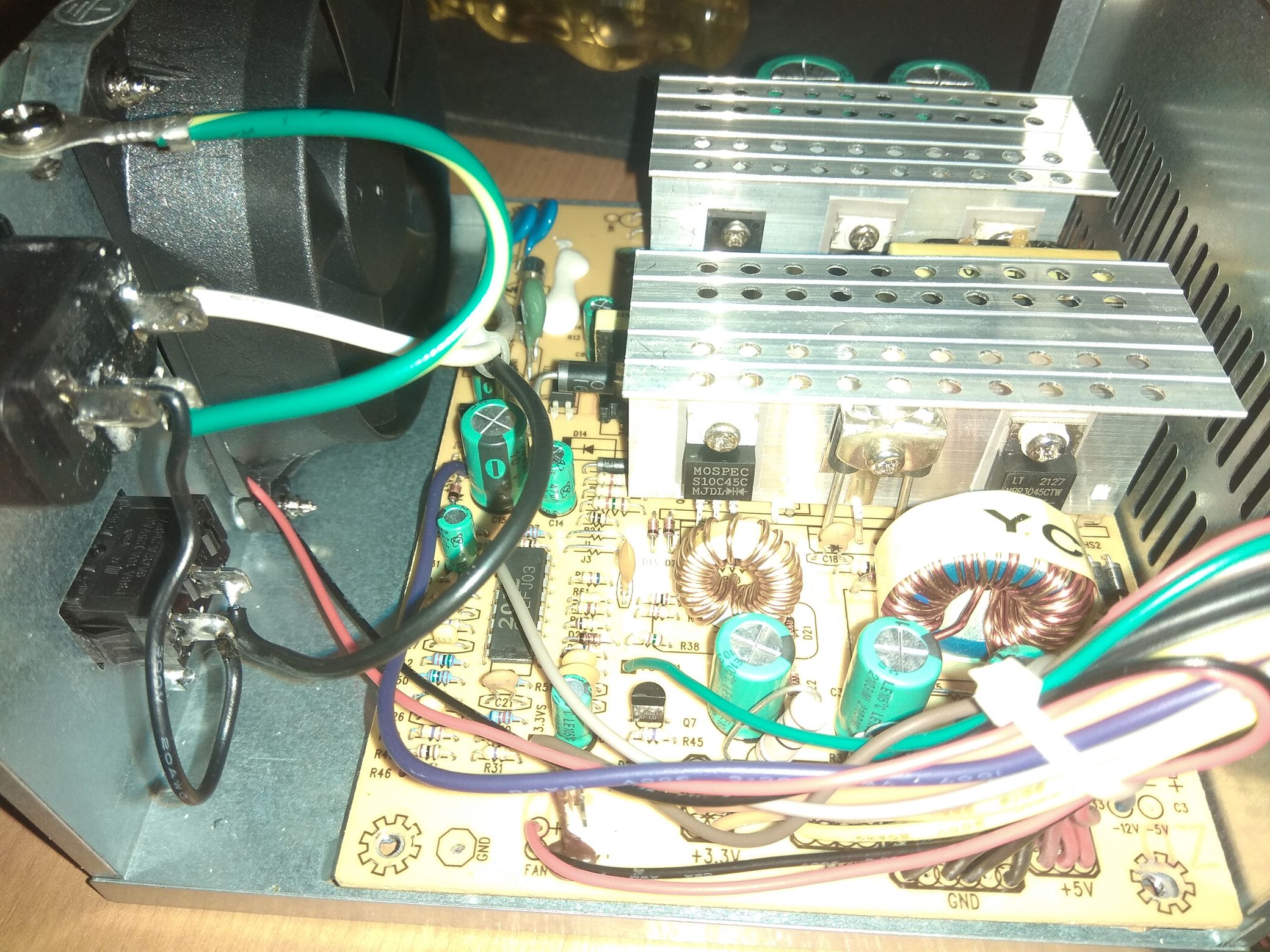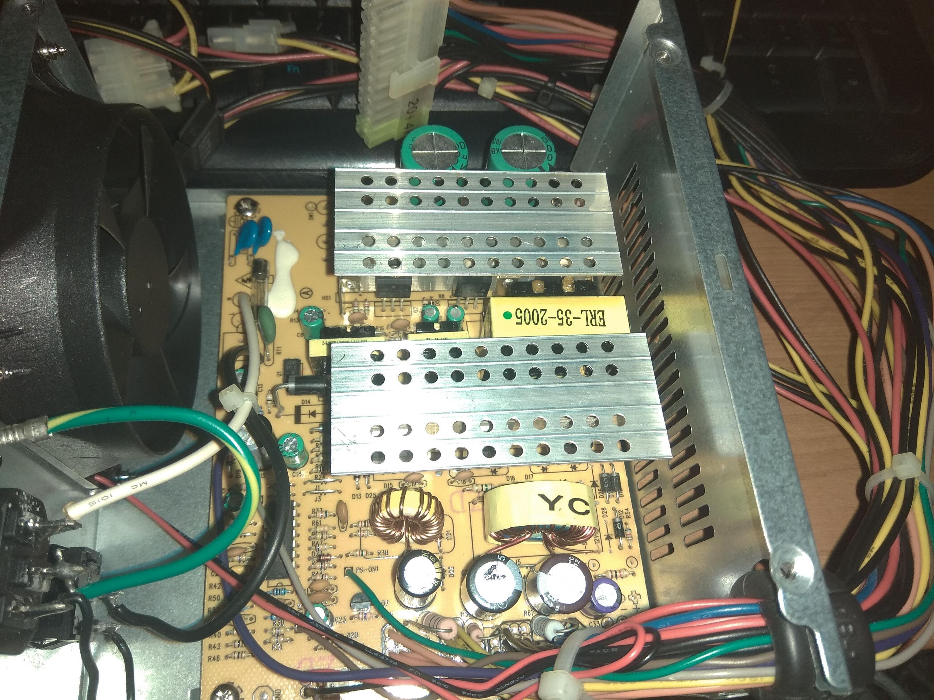 This PSU has busted Ltec caps, the 12V and 5VSB ones are sooo bulged and the reading is 28pF... The 5V + 3.3V ones show way above rated capacity and I guess they are approaching their death.