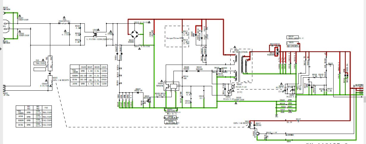 Replaced with brand new: both optocouplers U6501/02, rectifier D6515, U6503 IC.