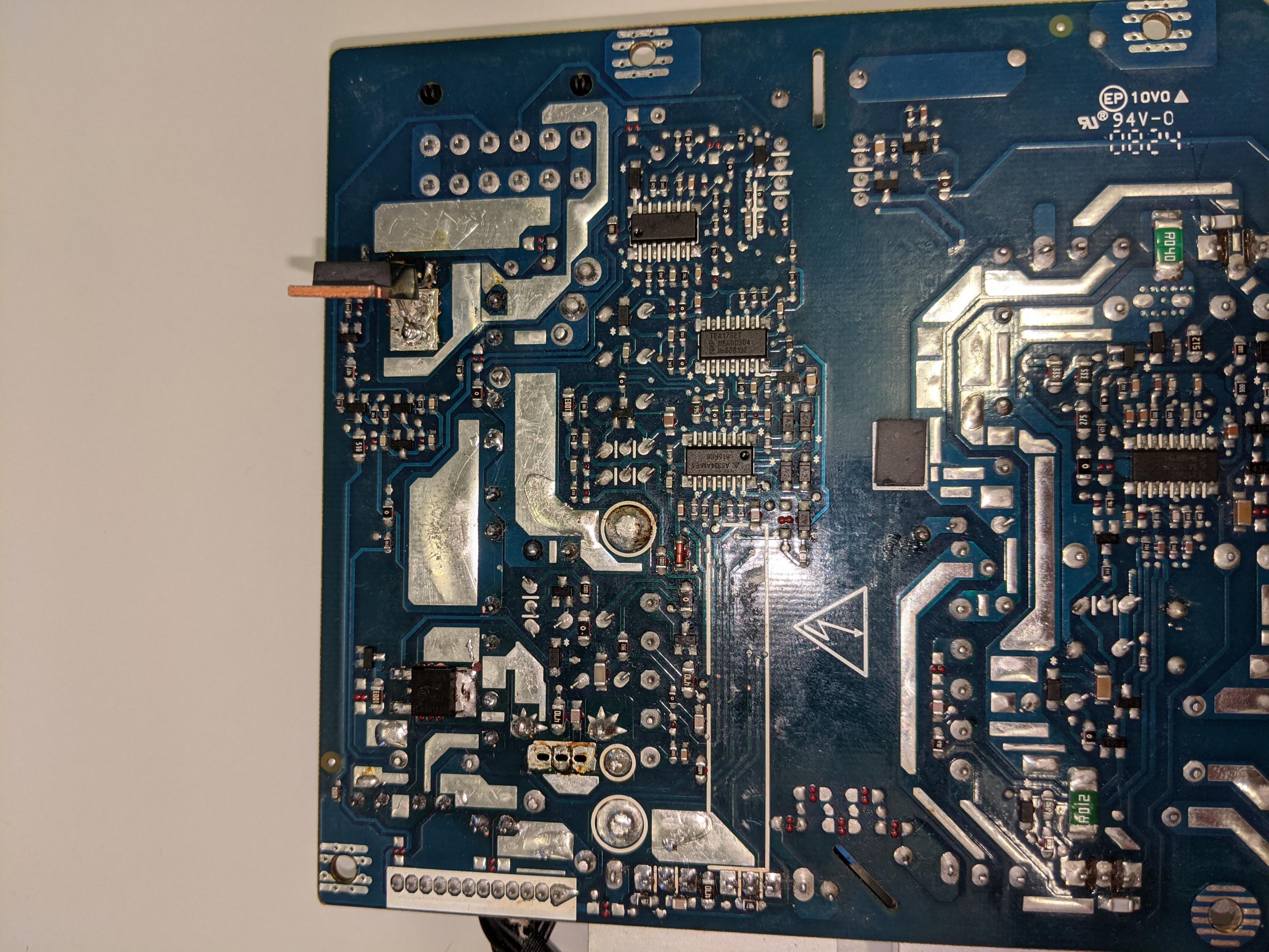 The next step was to start iMac from the external PPS, it works fine, so I do not expect any influence from "Main PCB". With external PPS on the 12V line, I saw ~4A on it and on the 24V line several mA (the iMac screen is disconnected).