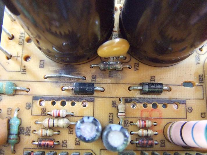 Then I looked at the original CS brand primary caps and noticed some burn marks on them. So i started looking around on the primary side, and noticed a smoked resistor and a diode that looks like it had gotten hot and let the magic smoke out.