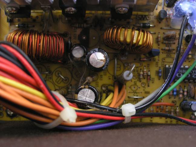 This morning, I decided to check all of the electrolytic capacitors inside my computer. All of the electrolytics on the boards were good, but there was one bulging in the power supply (C23 - 2200uF 10V, with the brand which appears to be "DON" RK series). I decided to replace this with a 3300uF 10V Rubycon unit, and as a good measure, added C28 and C22 (both 3300uF 10V Rubycon units, which were not originally fitted), as well as replacing C1 and C2 (both 470uF 200V Gincon GR series units) with Nippon Chemi-Con units. C1 and C2 were not bulging, but were replaced with better quality units as a good measure.