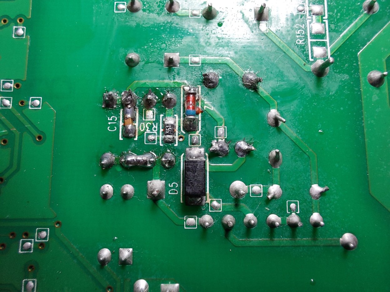 I removed the blown cap and the vyper22a, but in the process, I also broke a SMD capacitor (C15). Does any of you know the capacity of the white capacitor I removed by mistake? Or if there is a way to calculate it?