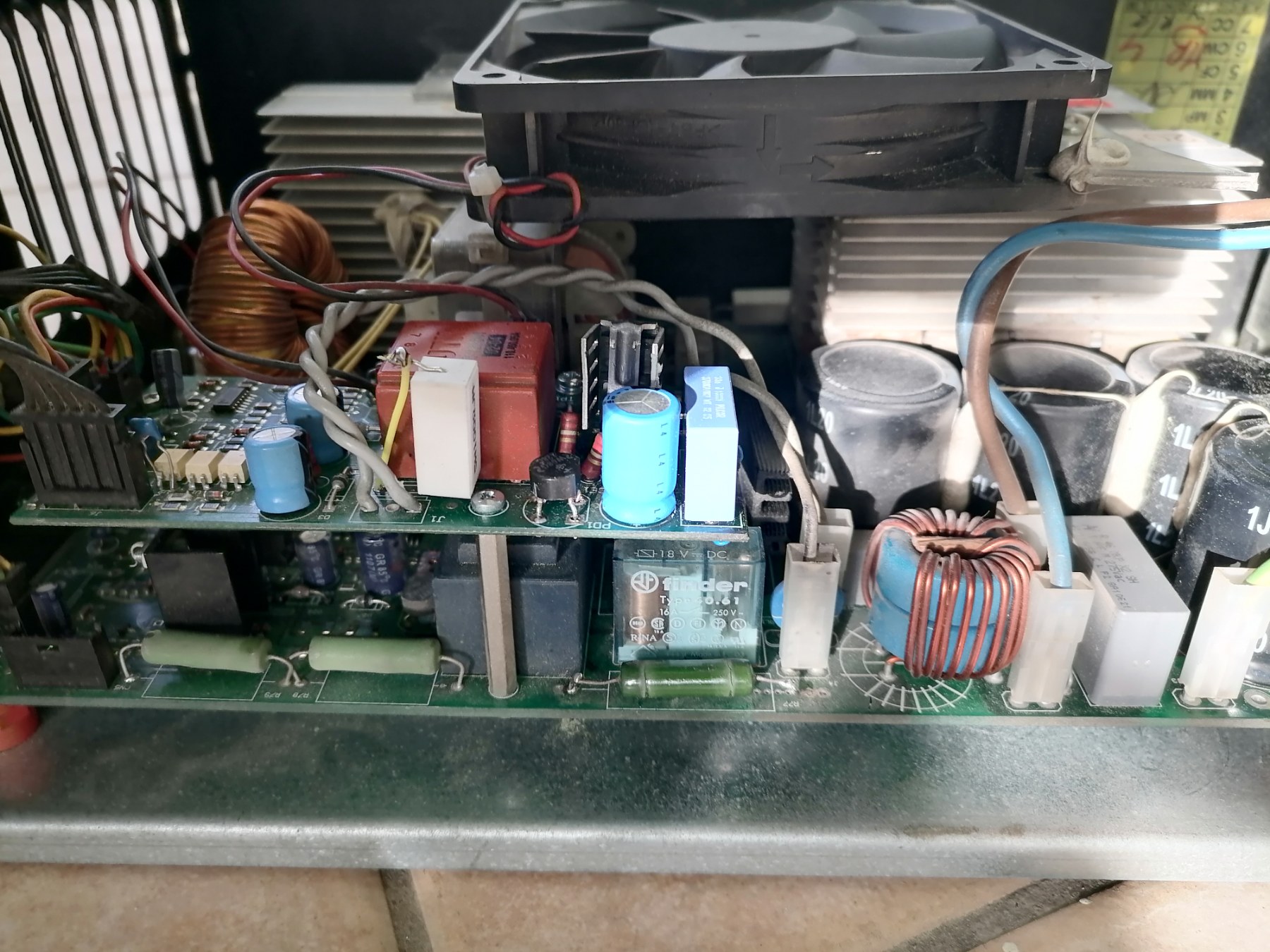 You had absolute right i cut the pcb in the burn area and the machine start up...it has another issue ..on ports of welder has only 10volt ac...and if i increase amp it does a little better arc but its still weak for welding. i think voltage must be at last 30volts... shall i check the big capacitors with esr ? or its something else?Comment