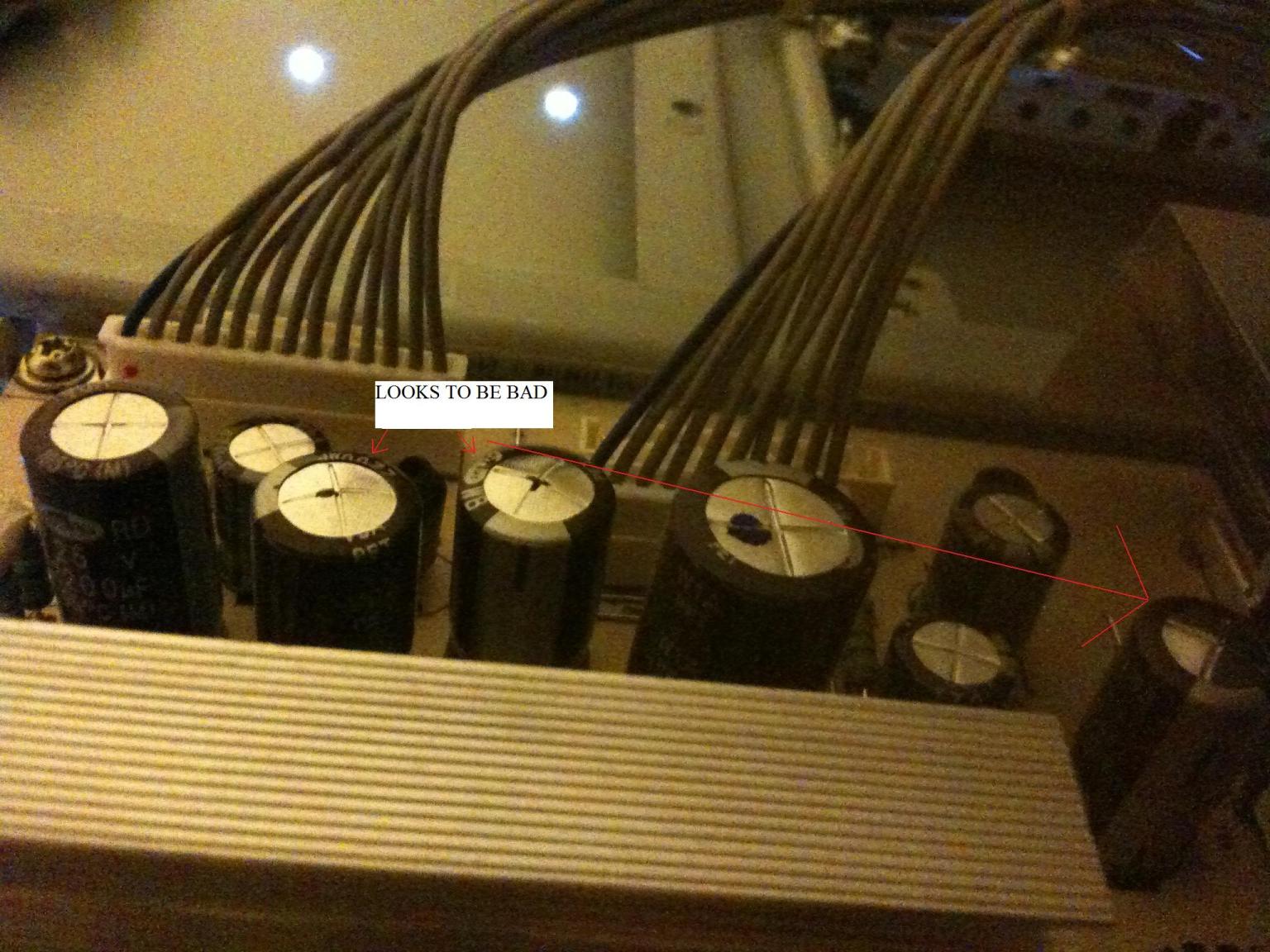 You could test the big caps with an ESR/capacitance meter.Last edited by seanc; 06-13-2010, 08:10 AM.Comment