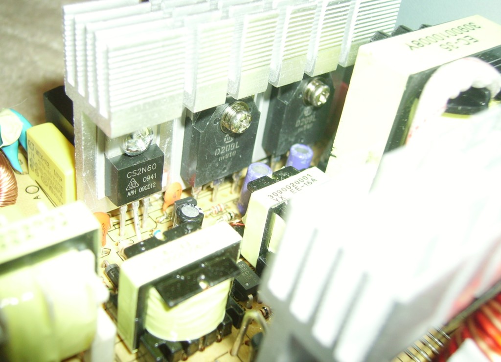 The heatsinks and output rectifiers (particularly the +12V one), as well as the 200V input capacitors are a bit small for this wattage.