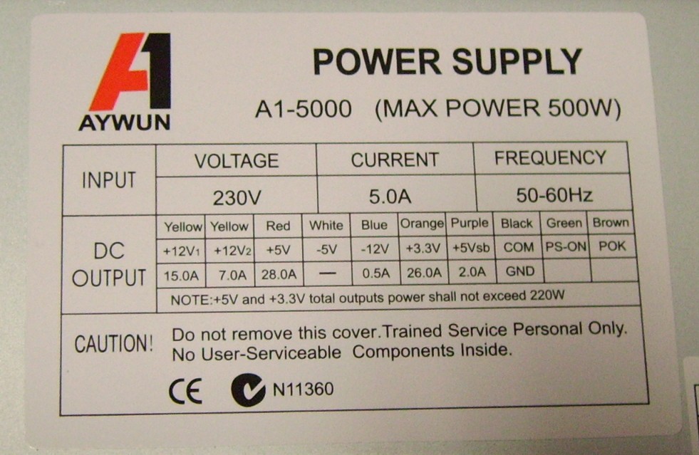 My boss has been using this brand of PSU called Aywun. We usually use the A1-5000 (500W) model. Has anyone here heard of them? I took the cover of one and they don't look too bad at all. The heatsinks are a good size, as are the transformers. There's a rectifier (not 4 diodes). No missing/jumpered parts on the transient filtering. From memory the primaries were 680uF. The secondaries are "BH" branded. I'll see if I can get some pics of one once I get over this flu and get back to work.