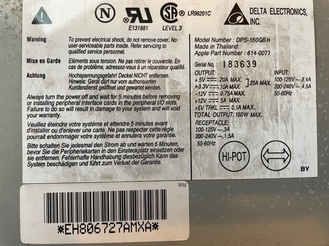 I got a faulty Delta DPS-150GB PSU from a Power Macintosh G3 Beige.
