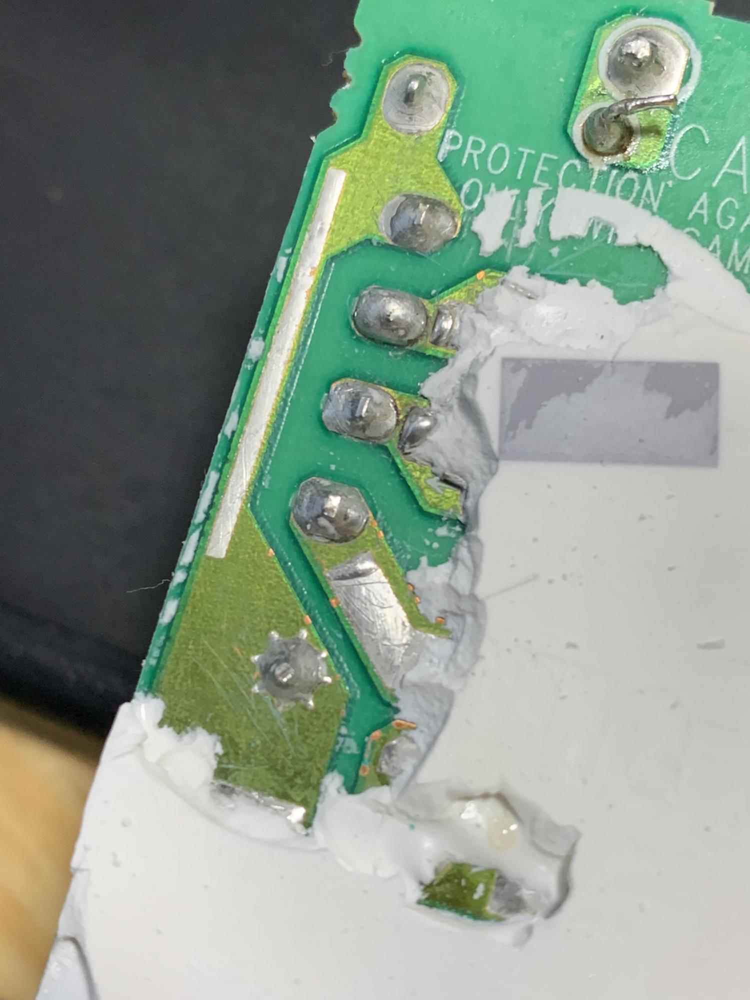 I have both probes on the capacitor on the underside of the pcb. Will do more resoldering as per your suggestion after removing the silicone. Since the silicone has been hardened, it will take a lot of time and patient. Anyways, I will try to do so.