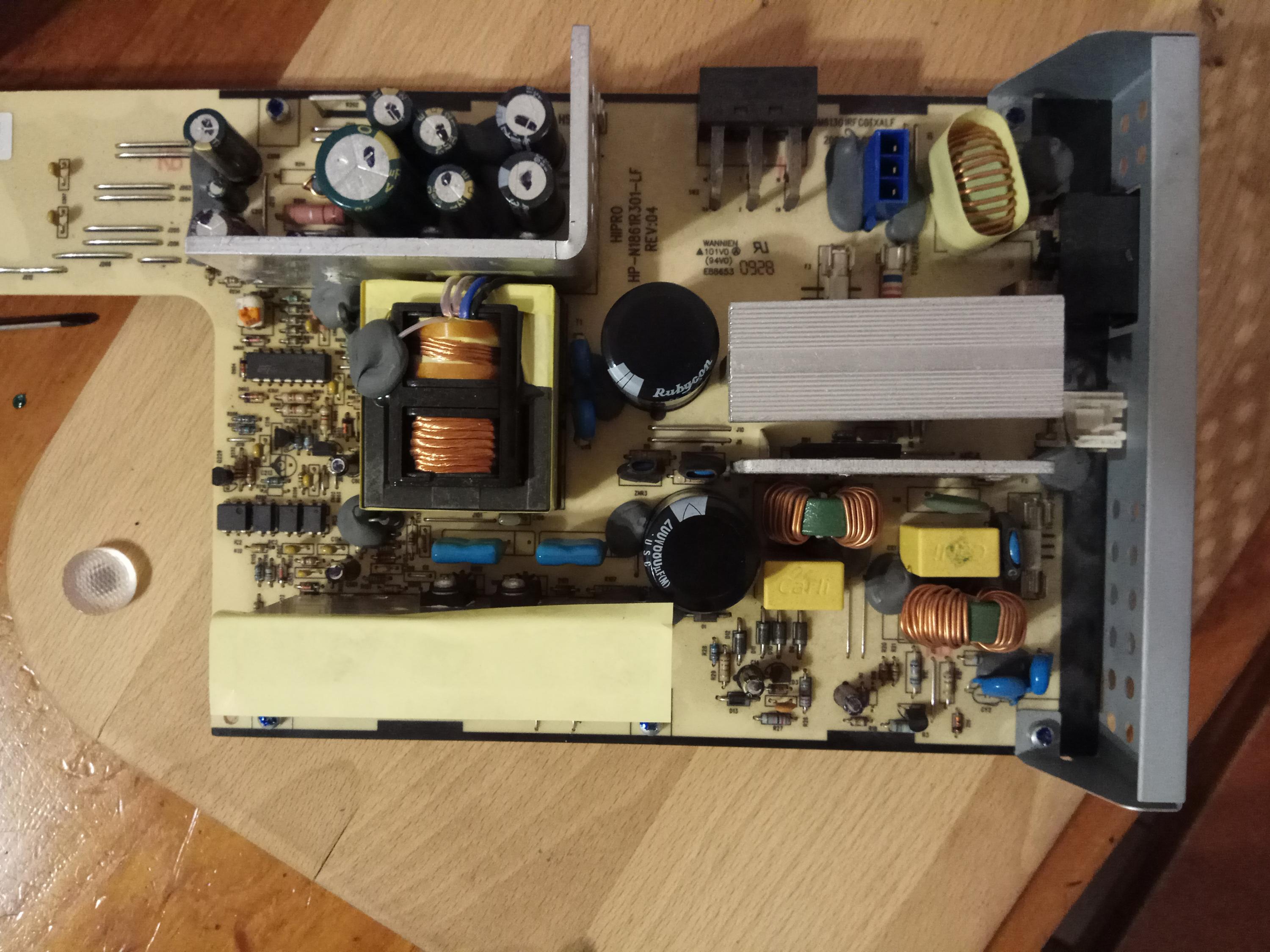 Working on another failed Lexmark LVPS power supply. The printer gradually had more and more trouble making it to the post screen until finally no power on at all. I'm replacing the two large caps, and the one small 100uf 35V cap that shows a small bulge. That is the only visible cap issue, but I hear a faint fast clicking that tells me caps are probably the issue.