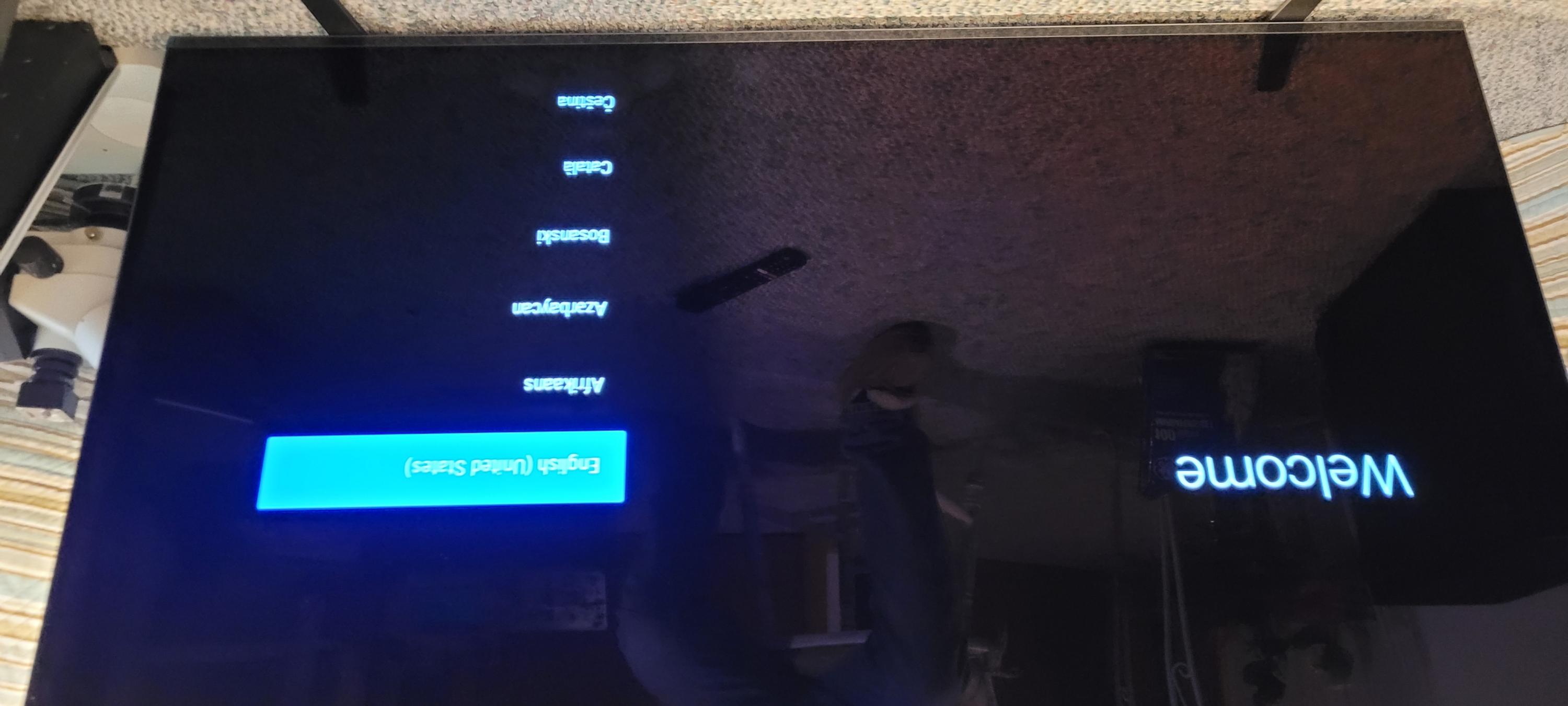 2) Waited 30 seconds, then pressed remote Power button and "Select language" setup menu in "1 Initial display after remote VOL- + Power reset.jpg"