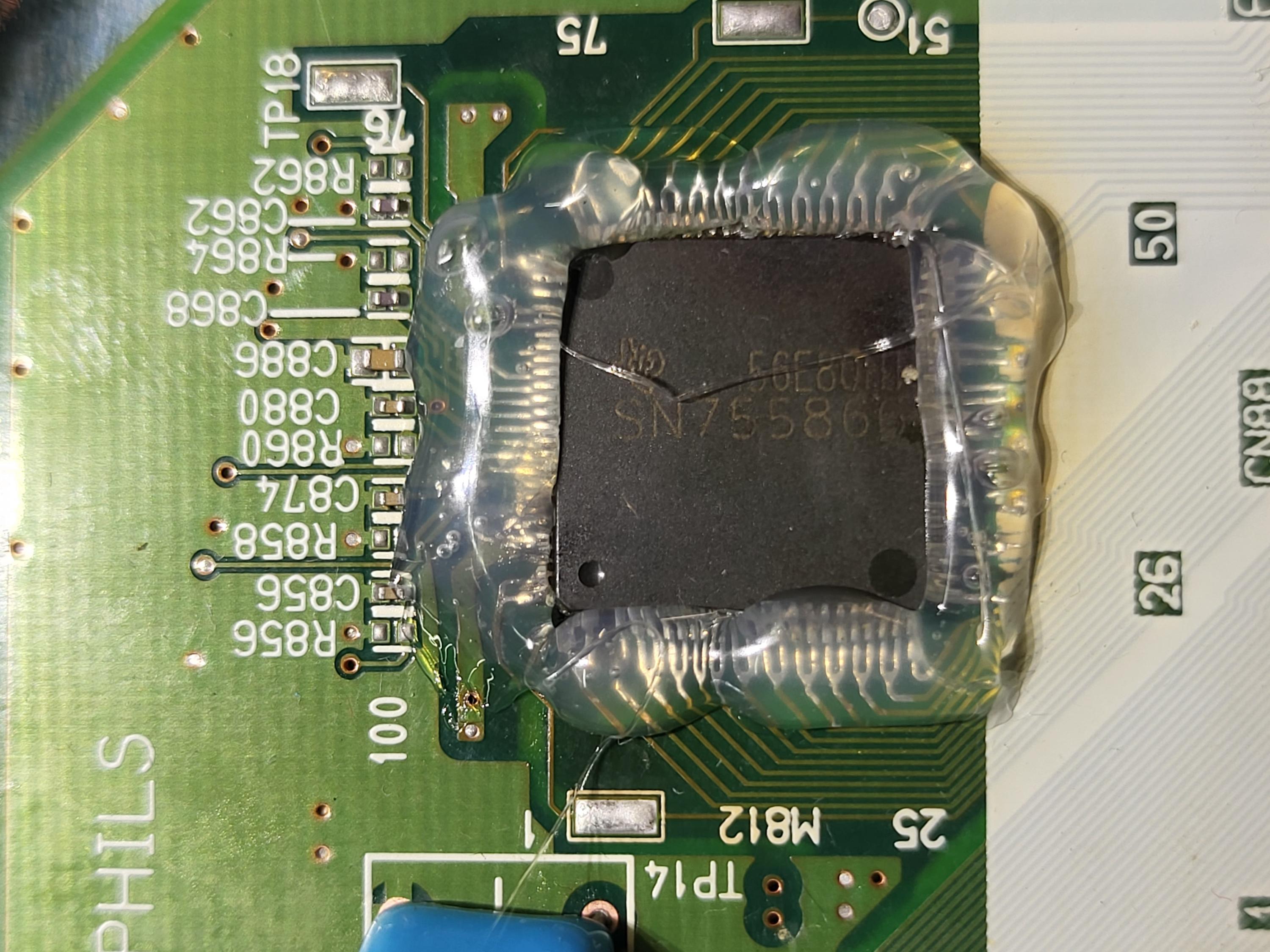 It didn't have the protective gel around its pins and there was flux on the board which was uncharacteristic for such a pristine TV.